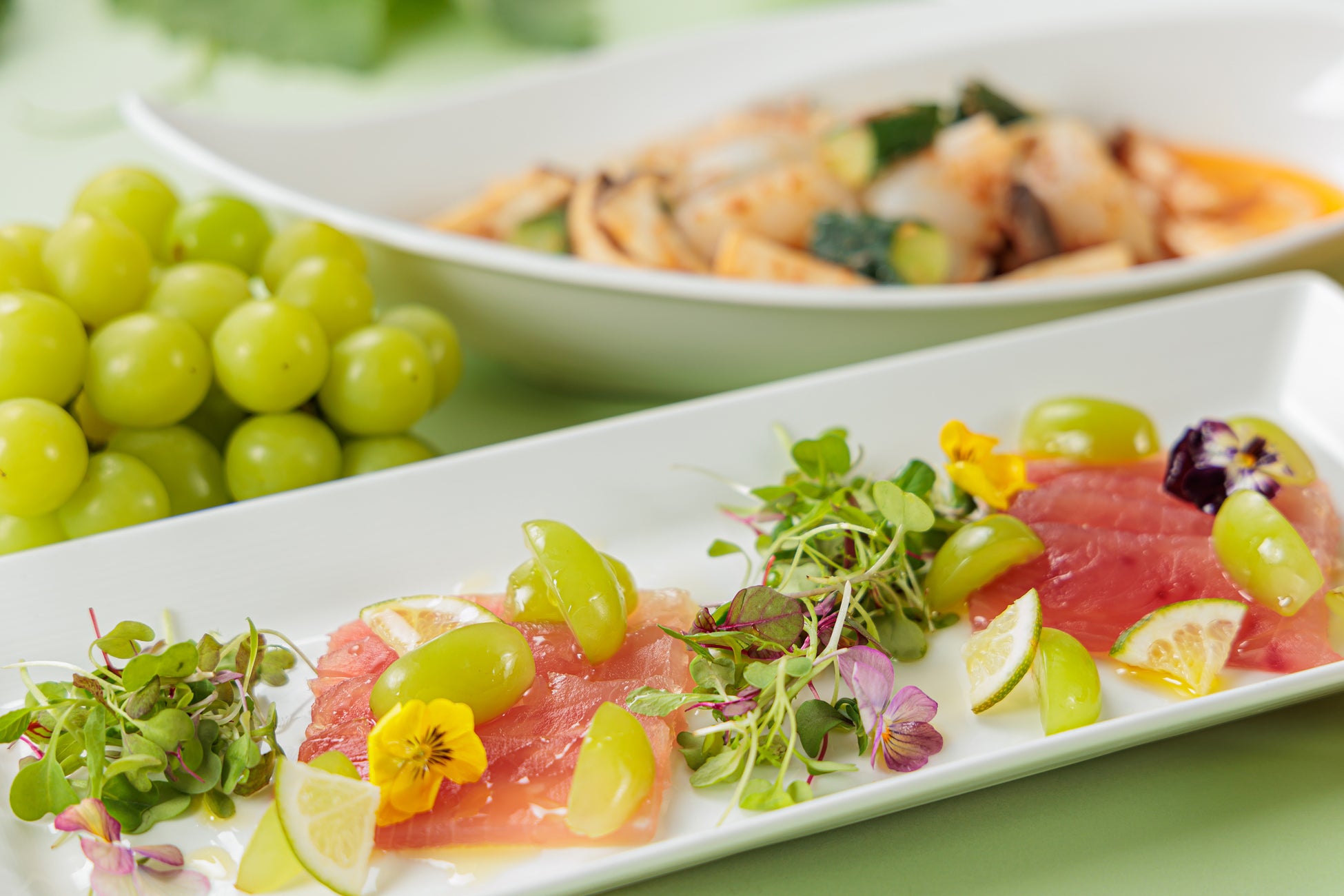鮪のカルパッチョとシャインマスカットのマリネ