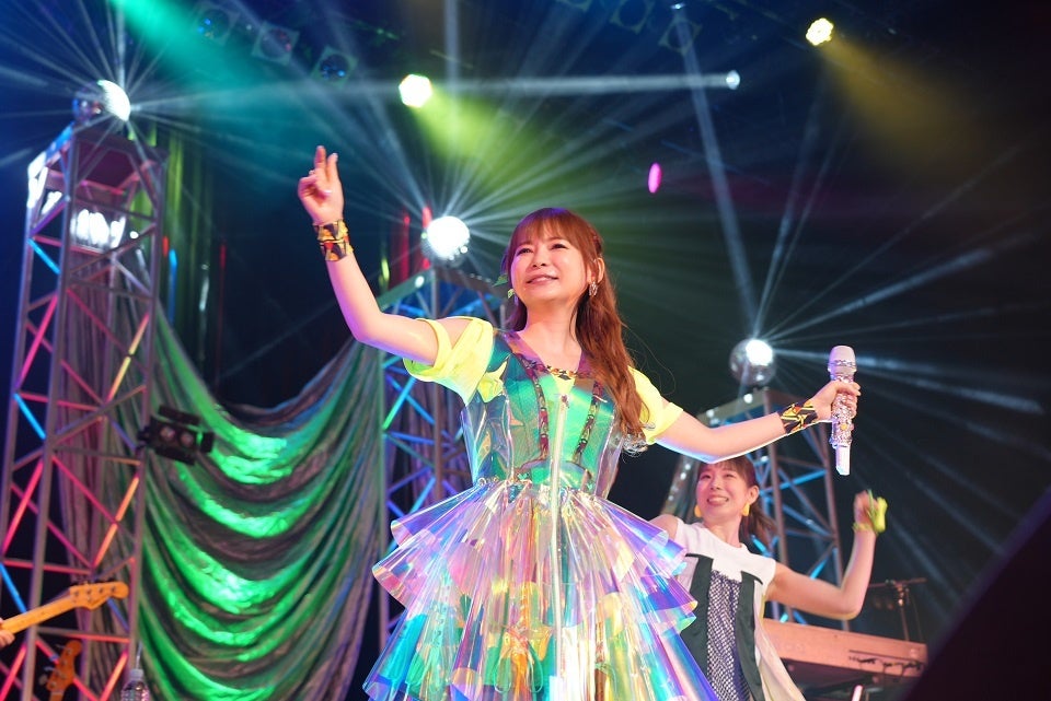 「みんなー3年ぶりー!!盛り上がっていくぞー!」の声とともに、愛用のキラキラハンドマイクを手に、ド頭からライブの定番曲『ドリドリ』、『キラキラ-go-round』で会場を盛り上げていく。