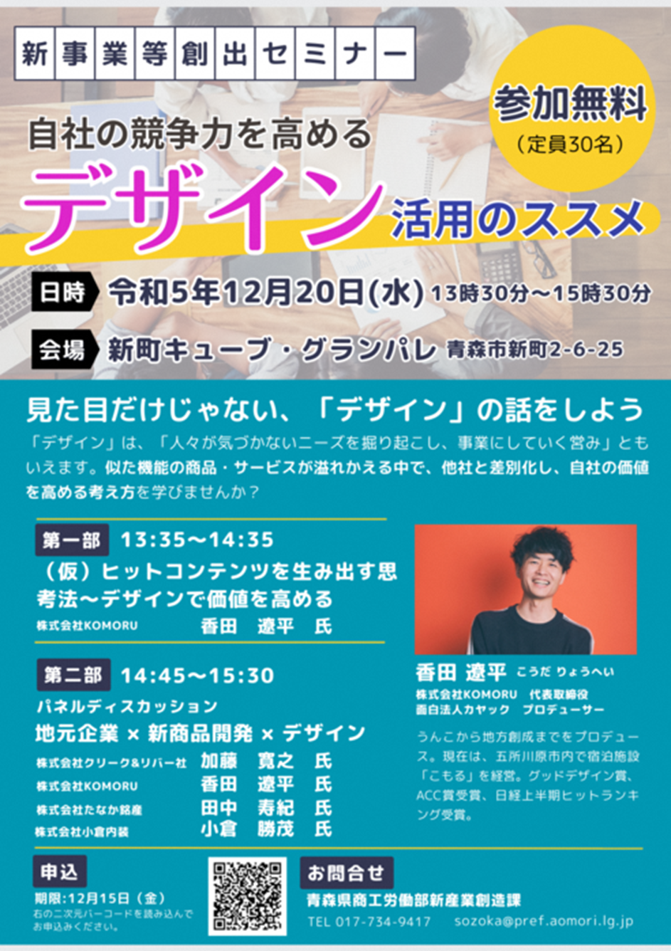 青森県 令和5年度新事業等創出セミナー「自社の競争力を高めるデザイン活用のススメ」 概要