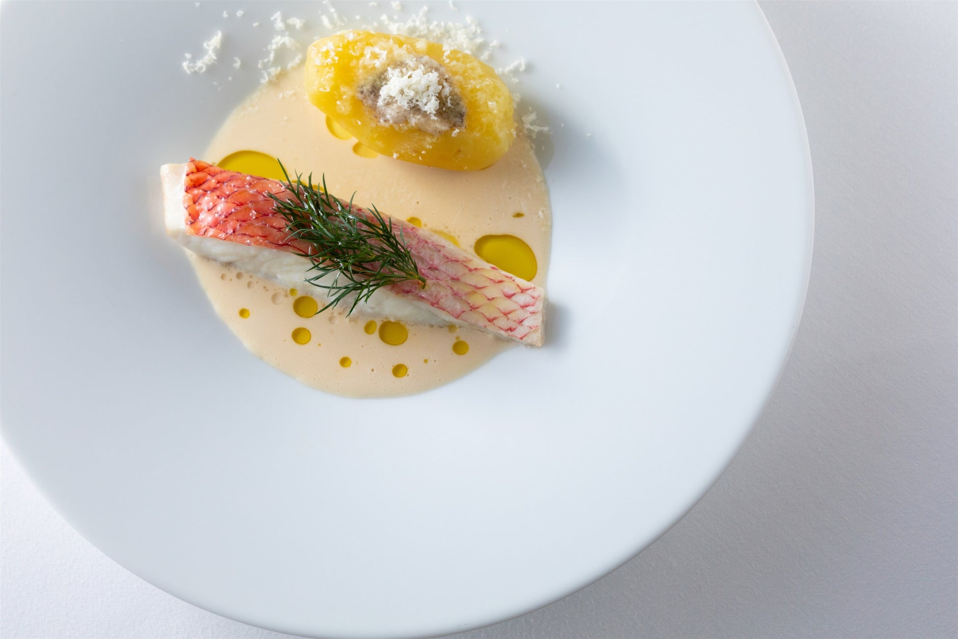 今回のフェアでは、前菜からデザートまで自由に組み合わせてお愉しみいただけるようプリフィクスコースをご用意(¥13,200スペシャルディナーを除く)。柔らかく蒸した尾長鯛と熟成させることで旨みが増したじゃがいもを特製の白ワインソースで味わう“尾長鯛のヴァポーレ アロマフレスカ風白ワインソースと熟成じゃがいも”や、スペアリブのように艶やかに焼き上げた“金華豚の蜂蜜スパイス風味”など、アロマフレスカで人気のメニューもご堪能いただけます。