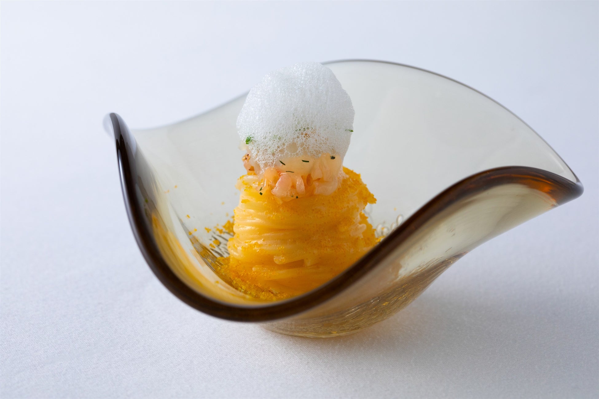 アロマフレスカ名物!ボタン海老とからすみの冷たいカペッリーニも。