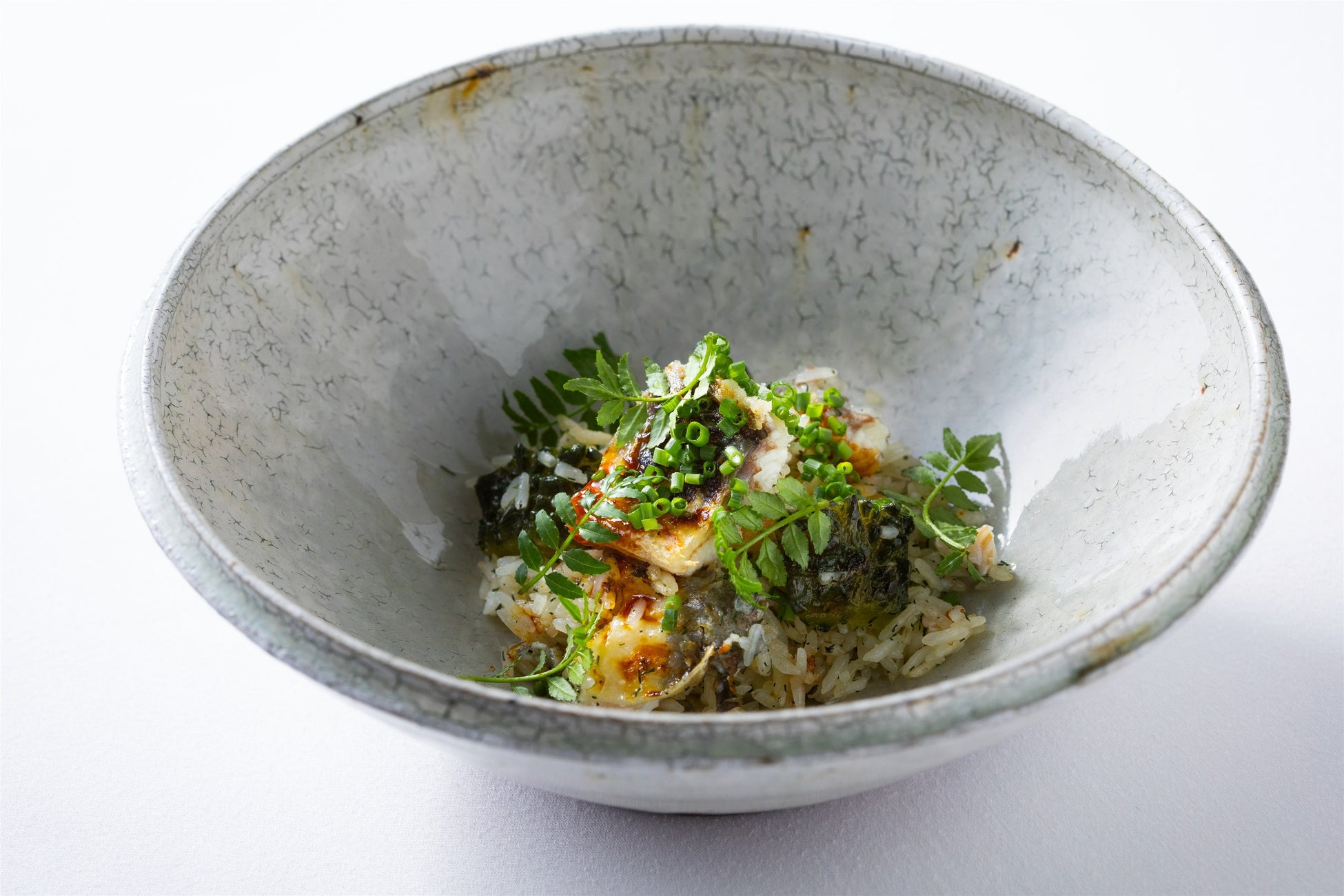 ランチ、ディナーともにすべてのコースでご用意するのは、アロマフレスカ名物の“ボタン海老とからすみの冷たいカペッリーニ”。上品な甘さのボタン海老とからすみの塩気が、冷たいパスタと良く絡み合い、まさに三位一体の味わいに。思わずおかわりしたくなるほどの感動をお届けします。また、初夏の季節にピッタリの一皿として“鰻とゴーヤ、ジャスミンライスのリゾピラフ”もご用意。香ばしく焼き上げた鰻、みずみずしいゴーヤ、ジャスミンの香りがふわっと香るリゾピラフは、リゾットならではの食感を残しつつ、お米本来の旨みもしっかり味わえる一品です。