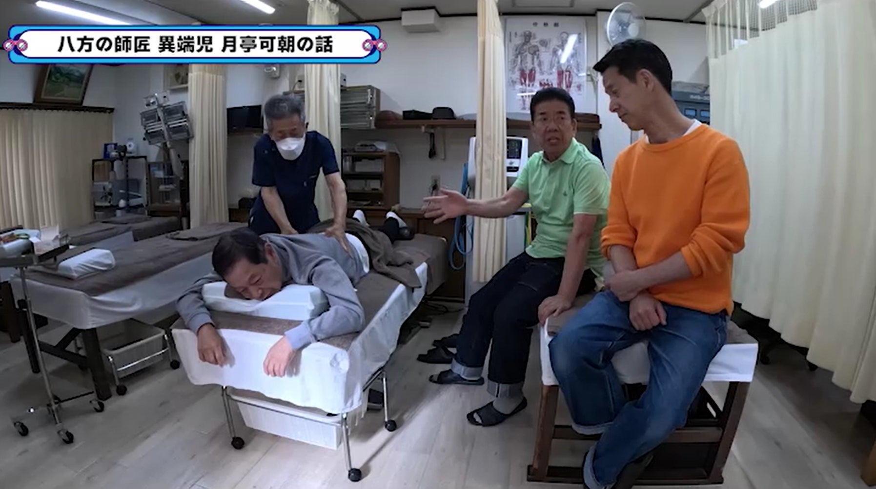 さっそく施術をしてもらう八方。きよしと忠志は横でその様子を見守りながら、3人トークがスタートします。