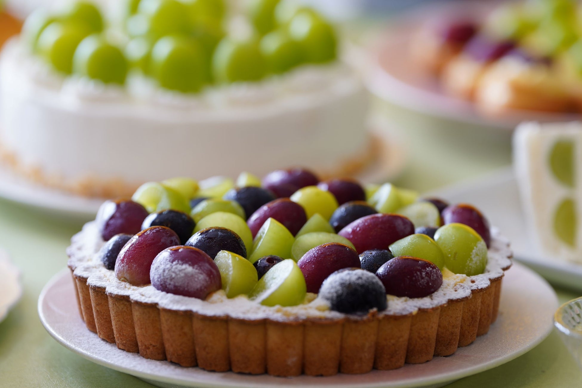 一番のおすすめは、4種類のぶどうをすべてトッピングする「彩りぶどうのタルト」です。それぞれのぶどうが引き立つよう、甘さ控えめなカスタードクリームと合わせて、サクッとしたタルト生地と一緒に味わっていただきます。また、「巨峰の氷菓」は、ひとつひとつ丁寧に皮をむいた巨峰を果汁たっぷりの生地で包み、冷たくつるっとした喉ごしがたまらない一品です。さらに、しっとり濃厚なチョコレートペーストと大粒のピオーネの酸味が絶妙にマッチした「ピオーネショコラ」や、マスカルポーネと生クリームをたっぷり挟み、瑞々しいシャインマスカットを乗せた「マリトッツォ」など、ぶどうの特徴を活かしたスイーツを楽しめるラインナップとなっております。