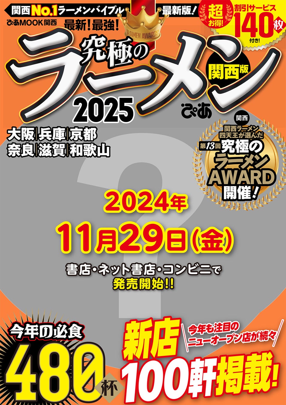 関西エリアNo.1ラーメン情報誌「究極のラーメン2025 関西版」が今年も11月末に発刊決定! 人気のアワード企画で総合グランプリに輝くのは?