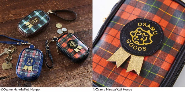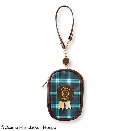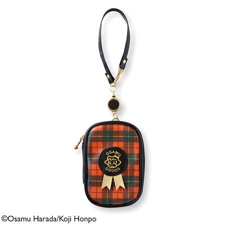 タータンチェックの上にOSAMU GOODSのアートを金色で箔押しした大人かわいいミニウォレットです。コンパクトな本体に、お金とかぎ一式が収納できて、ICカードなどを入れられる背面ポケットも。サッと伸びるリールも付いているので、毎日のお出かけに便利に使えます。