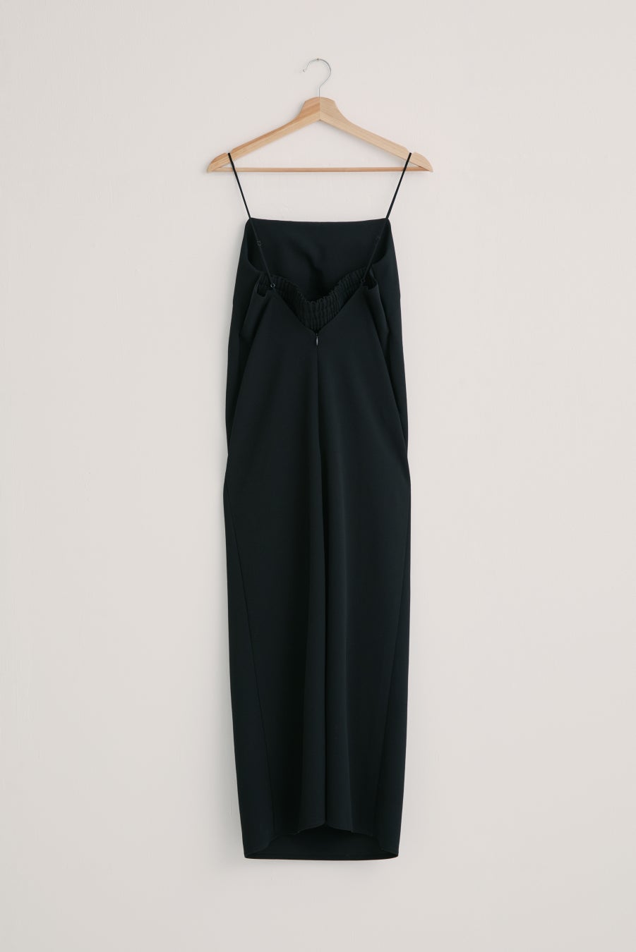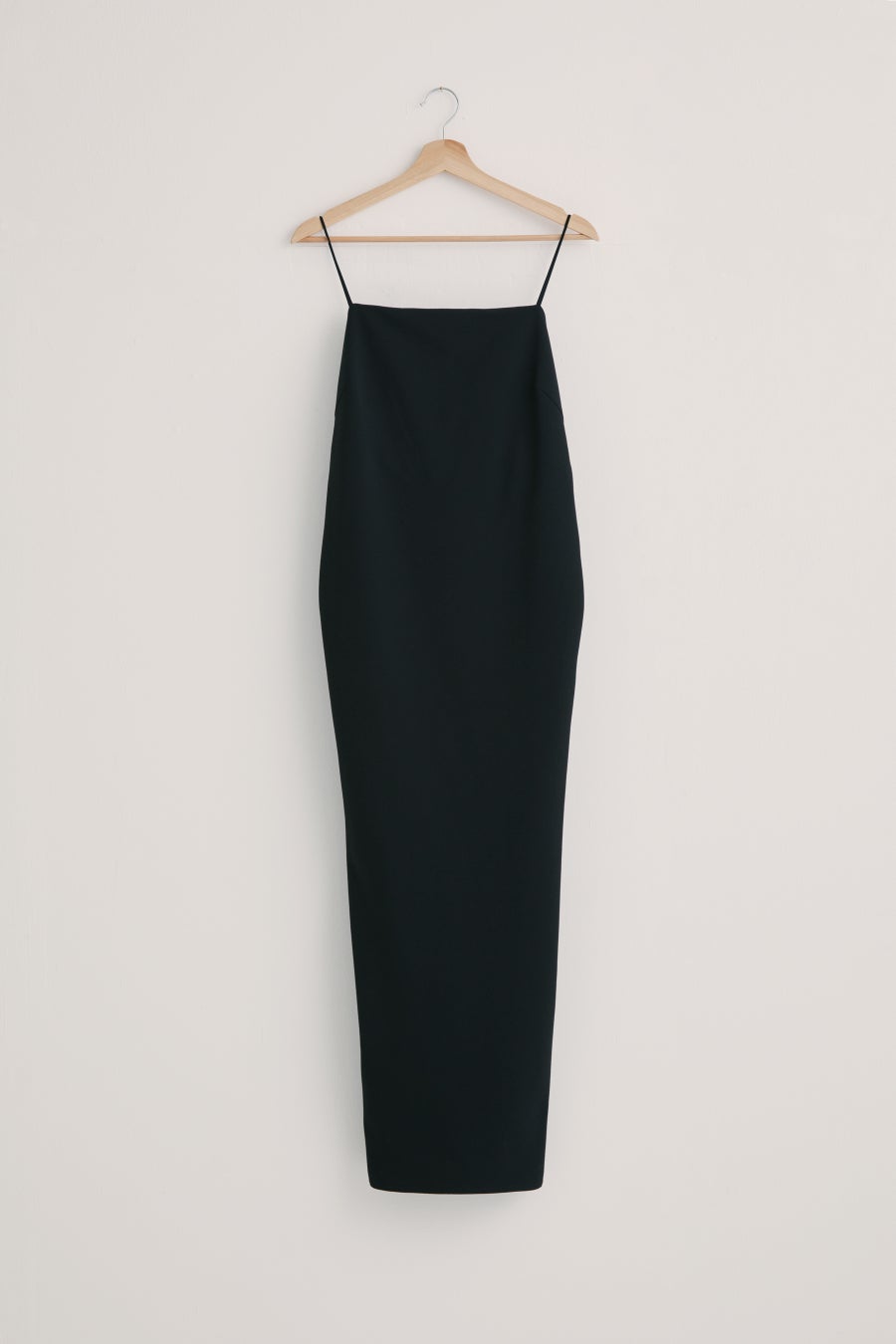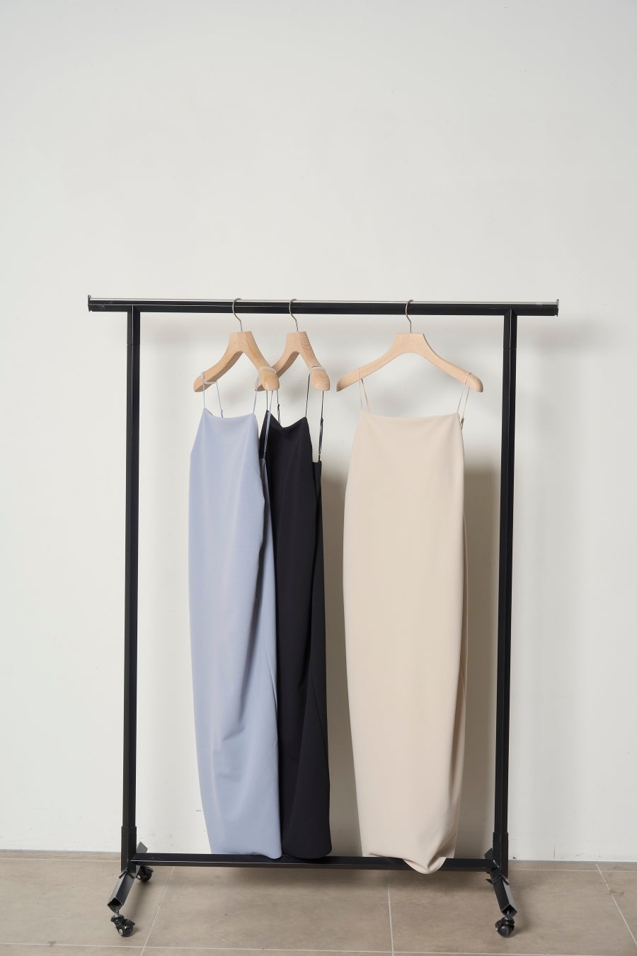 Iラインの美シルエットが映えるキャミソールワンピース。