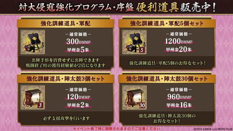■「対大侵寇強化プログラム・序盤」で役立つ便利道具を期間限定で販売