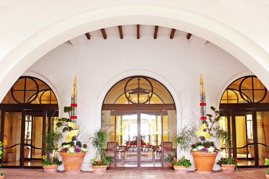 高さ約3.5mの門松や装花の華やかな正月飾りでお客様をお迎えします。