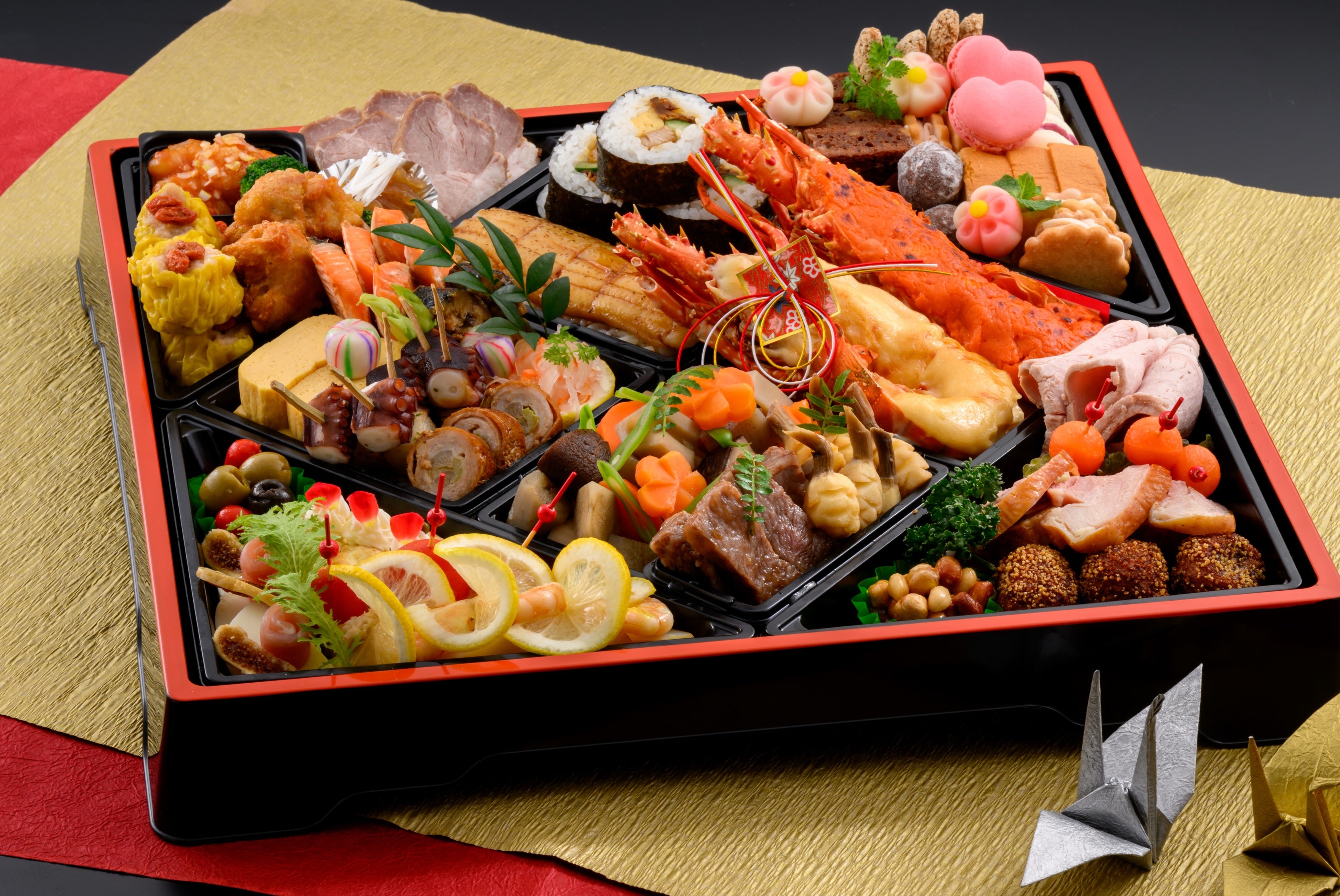 和食・洋食・中華の料理長とパティシエが紡ぐ年末年始限定オードブル。ロブスター雲丹素焼きやローストポークなど30種類以上にもおよぶ和洋折衷の豪華な美食のほか、フィナンシェやマカロンなど8種のスイーツもご用意しています。
