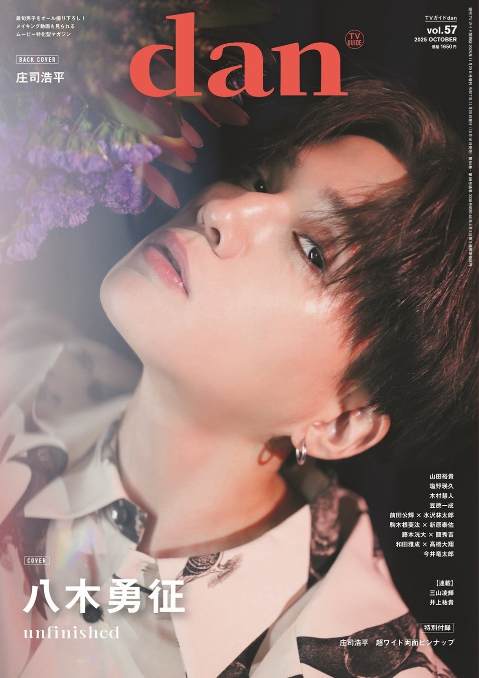 大好評「TVガイドdan vol.57」が増刷決定! 八木勇征の美麗ショット表紙、庄司浩平の‟遊園地デート風”写真が話題に!