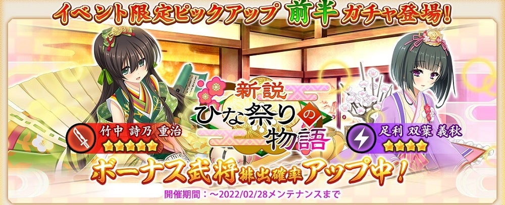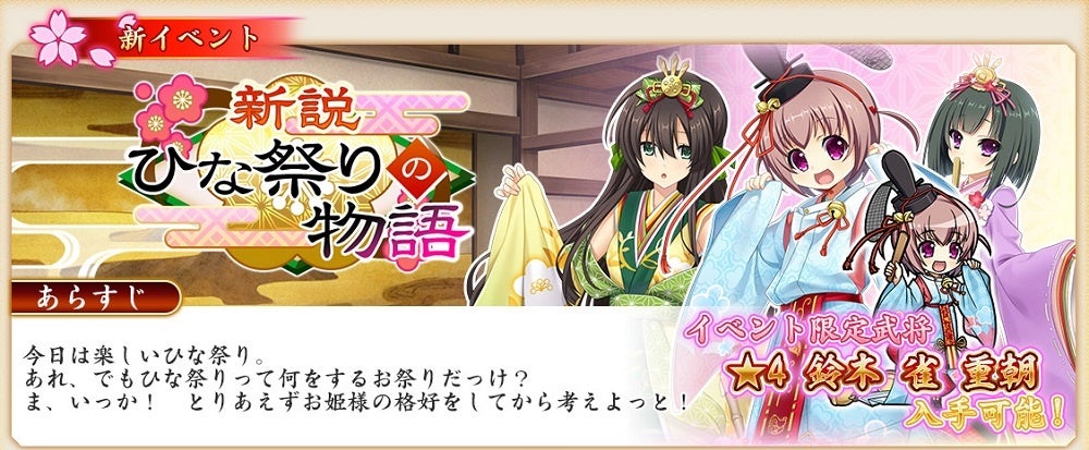 2月16日(水)より、『戦国†恋姫オンライン ~奥宴新史~』にてひな祭りイベント『新説・ひな祭りの物語』を開催いたします!