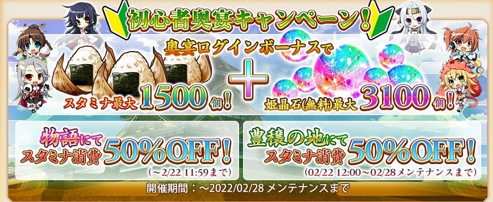 さらに、ひな祭りイベントの後半では物語スタミナ消費50%OFFにかわり、豊穣の地にてスタミナ消費50%OFFのキャンペーンが開催予定なのでそちらもお見逃しなく!!