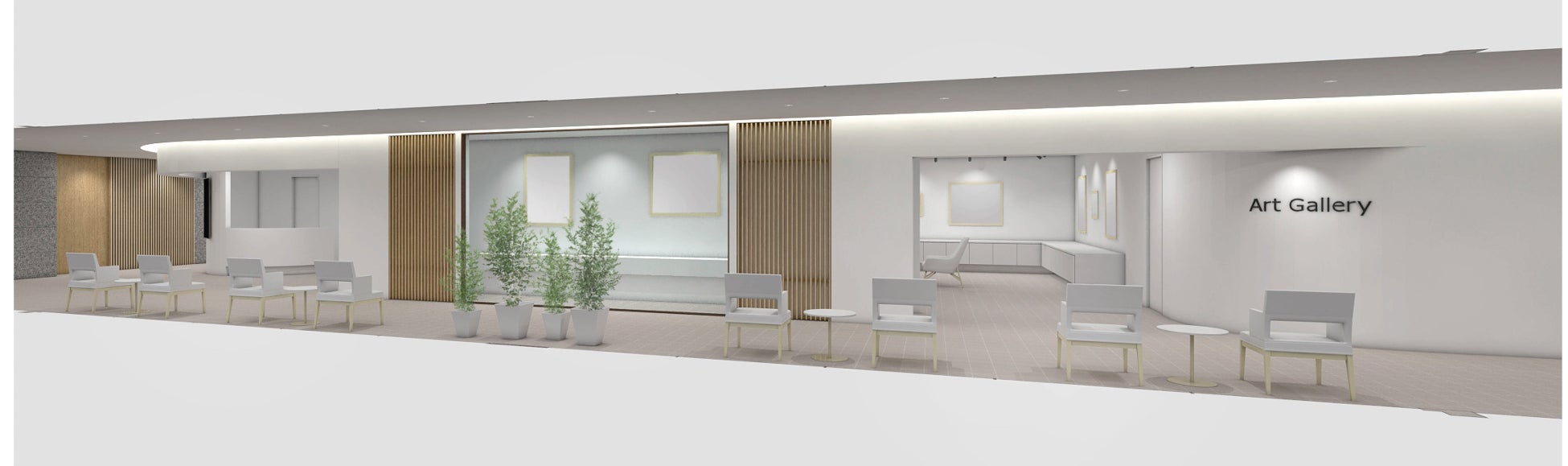 白を基調としたゆっくりと美術作品を鑑賞できるスペースを完備しています。