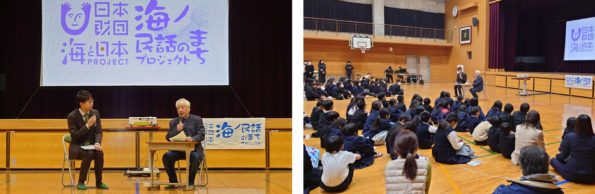 「海ノ民話のまちプロジェクト」は、日本財団「海と日本プロジェクト」の一環として実施するもので、「海との関わり」と「地域の学び」を、子どもたちに伝え語り継ぐことを目的としたプロジェクト。