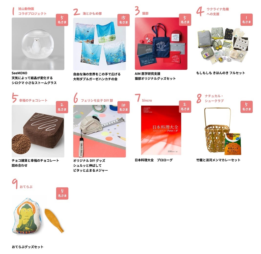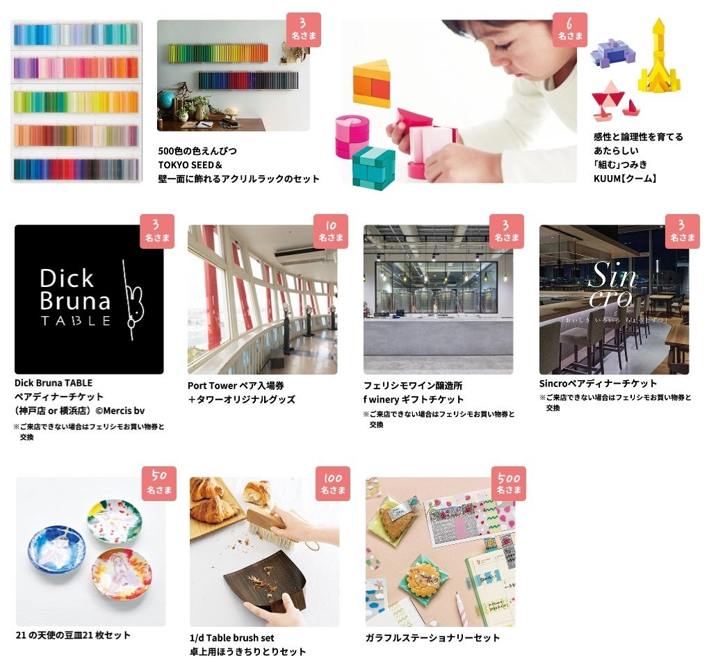 <プロジェクト賞><フェリシモ賞><協賛企業賞>以外の方全員に届きます。