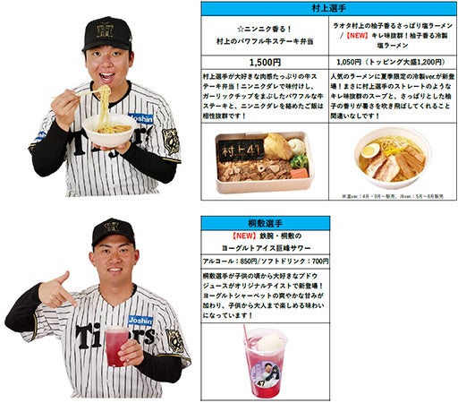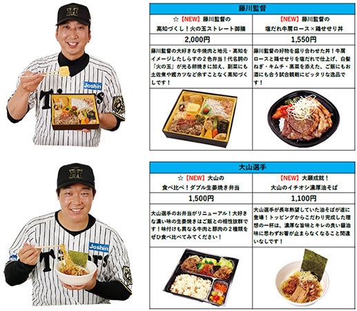 新監督の現役時代を彷彿とさせる「藤川監督の高知づくし!火の玉ストレート御膳」のほか、大人気メニューの新味「近本のさっぱり牛カルビ丼~淡路島産たまねぎ盛り・デミ風ソースver.~」など、 充実のラインナップをぜひお楽しみください!
