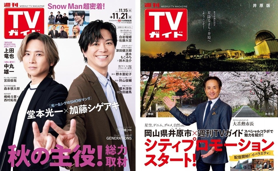 11月12日(水)発売の「週刊TVガイド」(2025年11月21日号)では、「イバラエティ」の情報に加え、井原市の大舌勲市長からのメッセージも掲載。さらに、大舌市長は裏表紙にも登場! 今後も定期的に、誌面にて井原市の情報をお届けいたします。