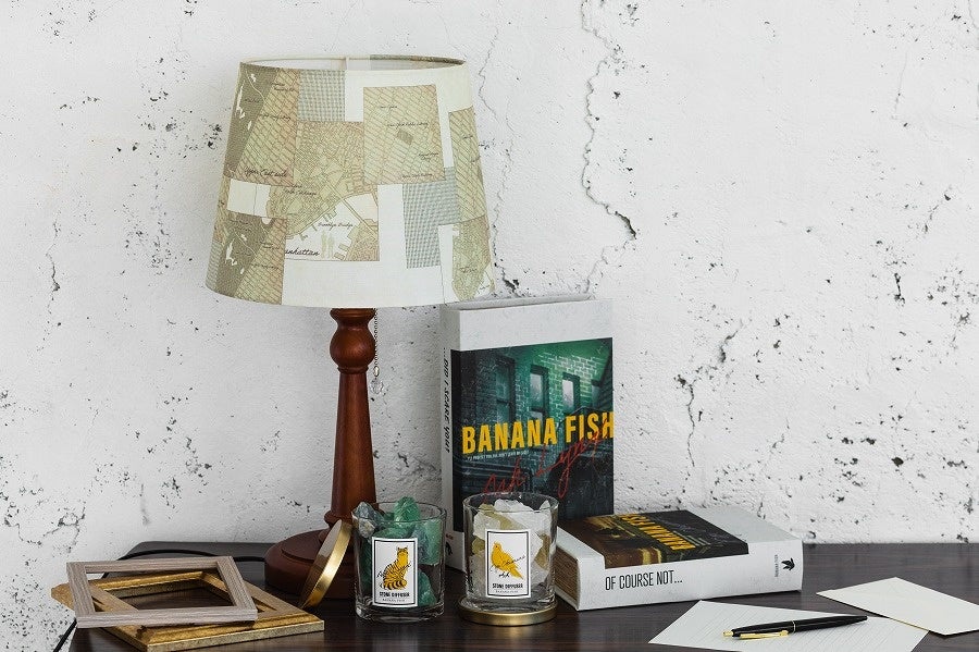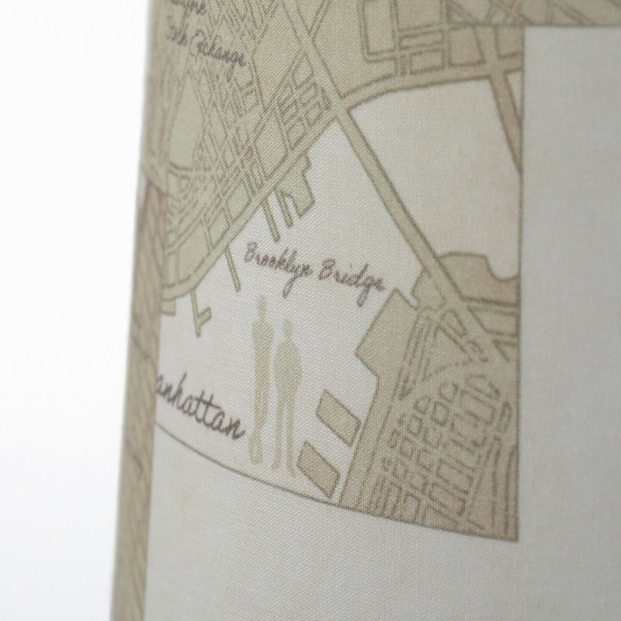作品の舞台となったニューヨーク。思い出深いあの図書館、公園、地区。そしてその付近の名所などを地図としてシェードにデザインしました。しっかりとした大きさがありつつも、木製のスタンドとセピア調のシェードが優しくお部屋になじみます。スイッチを引くとあたたかな光が灯り、アッシュと英二が共に過ごした日々を感じられるテーブルランプです。