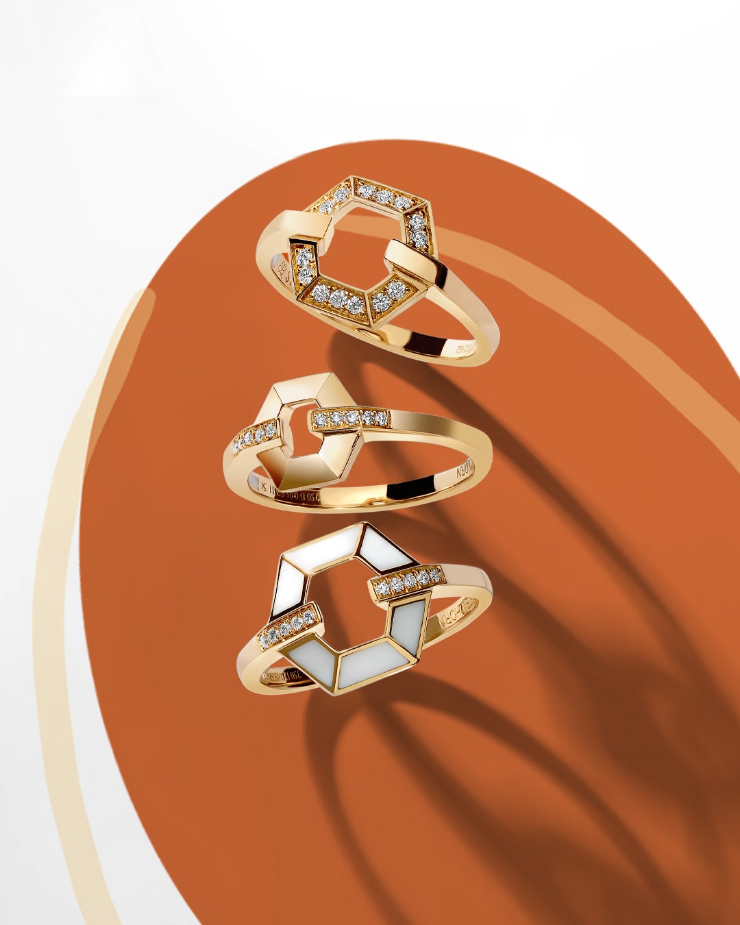 「幸運の象徴」としても知られるステンツホーンの代表的なデザインソース“ミツバチ“が苦労を重ねて構築するハニカムをイメージしたコレクション。