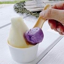 おからを飼料に育った牛からとれたミルクでつくるジェラート!ミルクと紅芋味の2種類ご用意しております。