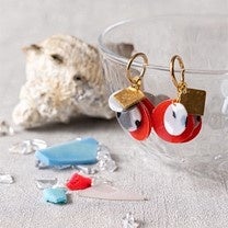 ペットボトルキャップをアップサイクルしたイヤリングです。使い捨てのプラスチックについて考えるきっかけになりますように。