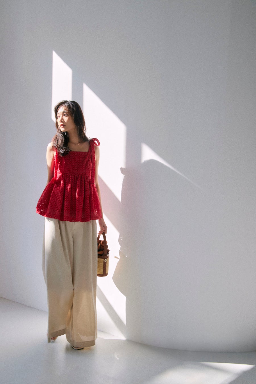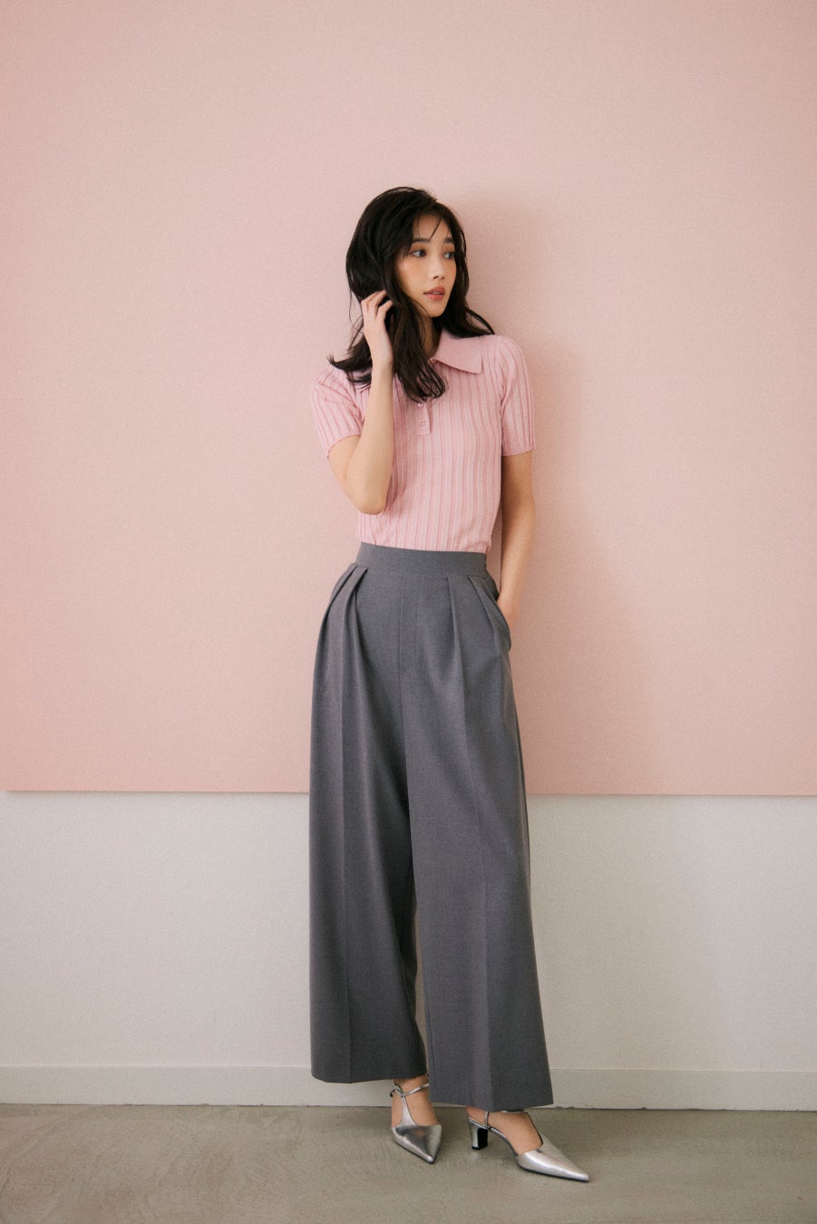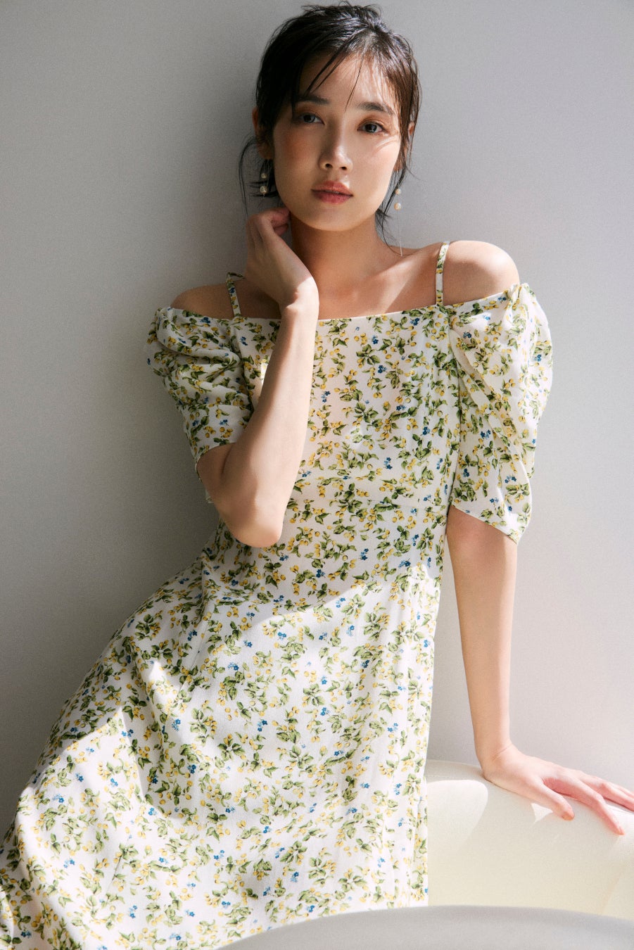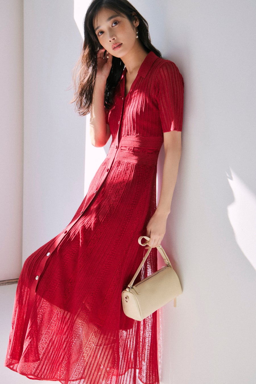 肌と生地が描くコントラストは都会の中にリゾートの気配を運び、フレッシュなフルーツモチーフや透け感のあるシアー素材、レモンイエロー・チェリーレッド・アップルグリーンなどのビタミンカラーで夏らしいジューシーさをプラス。エレガンスの軸を保ちながらリラックスした開放感を纏い肩の力を抜いた軽やかな装いが、心をほどき新しい風を呼び込むようなSummer Collection。