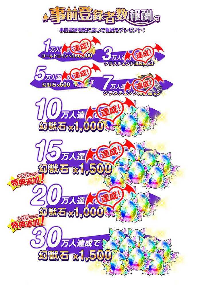これを受け、新たに事前登録30万人達成で『幻獣石×1,500』の報酬追加が決定いたしました。