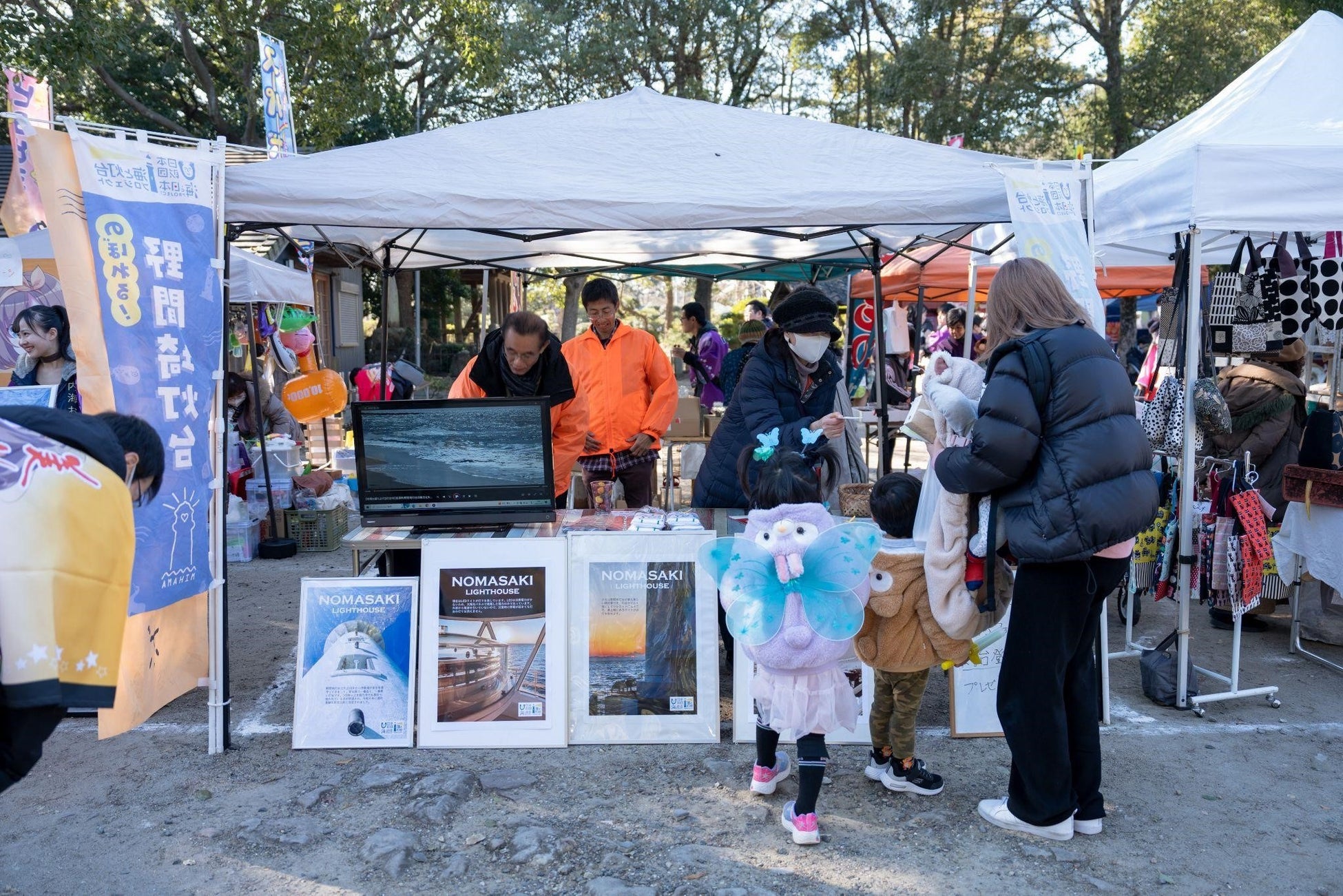 野間埼灯台ポータル化実行委員会は、コロナ前まで行われていた「大坊の楽市」を復活させ、2月2日にイベントを開催しました。第1回開催(2025年1月11日)の際とは出店者も変更があり、ステージ出店者も増え、さらに賑やかなイベントとなりました。