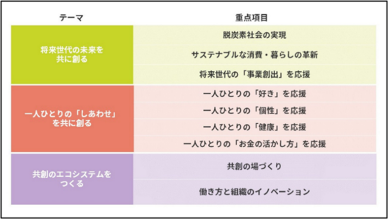 丸井グループは、めざすべき方向性を明確化した「インパクト」を目標にかかげており、その実現のためにはステークホルダーの皆さまとの共創が不可欠であると考えています。「インパクト」は、①将来世代の未来を共に創る、②一人ひとりの「しあわせ」を共に創る、③共創のエコシステムをつくるという3つのテーマからなり、本実証実験は①の重点項目である「サステナブルな消費、暮らしの革新」に寄与します。