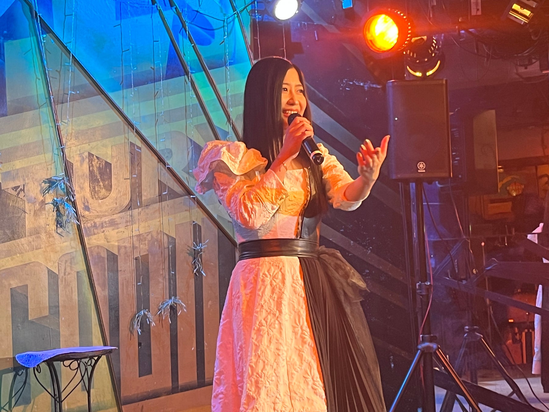 「発売の次の日にここでライブさせていただくこと、幸せです。日頃の皆さんへの感謝を込めて歌いたいと思います。このライブハウスは、今回の曲のプロモーションビデオを撮影した場所です。撮影ではバンドさんにも来ていただいて初めてLIVEの雰囲気で映像を作らせていただきました。今回の新曲を発売するにあたっては曲の雰囲気も変わったこともあって、初めてのカメラマンさんに撮影していただいたり初めて衣装を作っていただいたりと、初めてづくしな作品作りでした。あらたな門松みゆきの一面を見ていただけたら嬉しいです。」と話し、