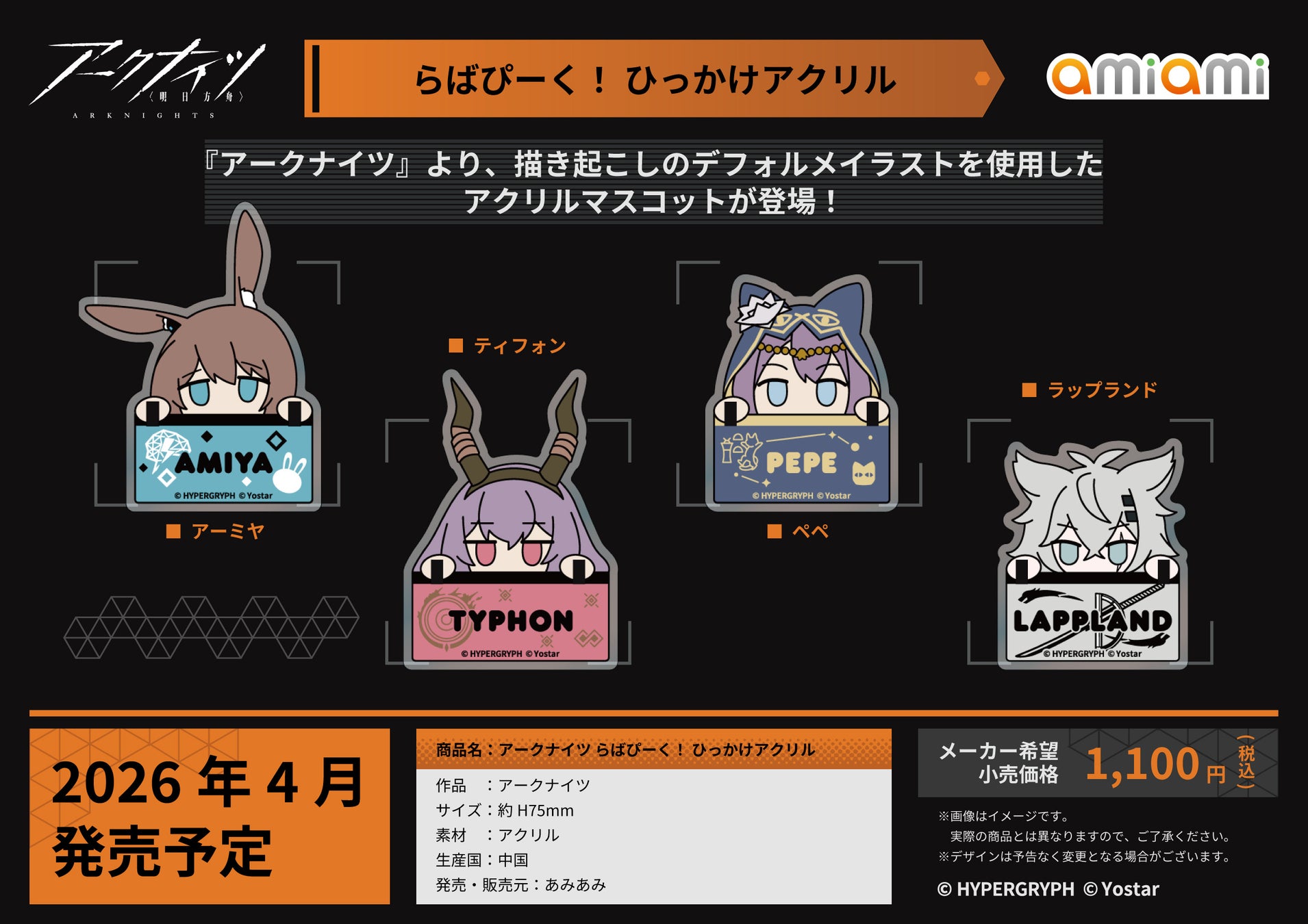 フィギュア&ホビー通販大手の「あみあみ」を運営する、大網株式会社(本社・東京都文京区)は、『アークナイツ 6th Anniversary Fes.「Continuum」』で販売された「オペぬいEX マドロックの巨像」「らばぴーく! ラバー缶バッジ」「らばぴーく! ひっかけアクリル」「マスコットラバーキーホルダー」「危機契約 書類ケース #3浄罪」を、2026年4月予定で発売いたします。