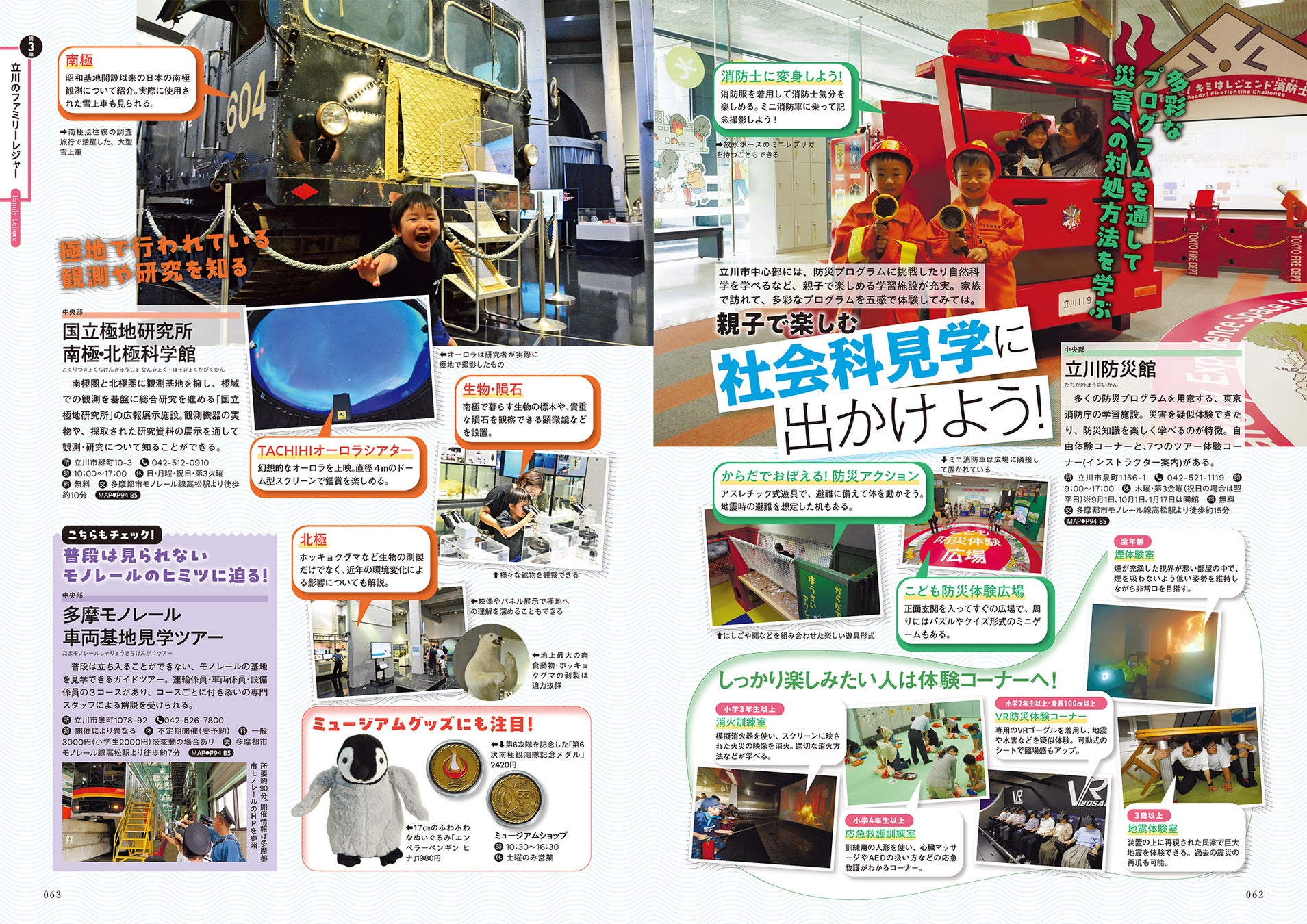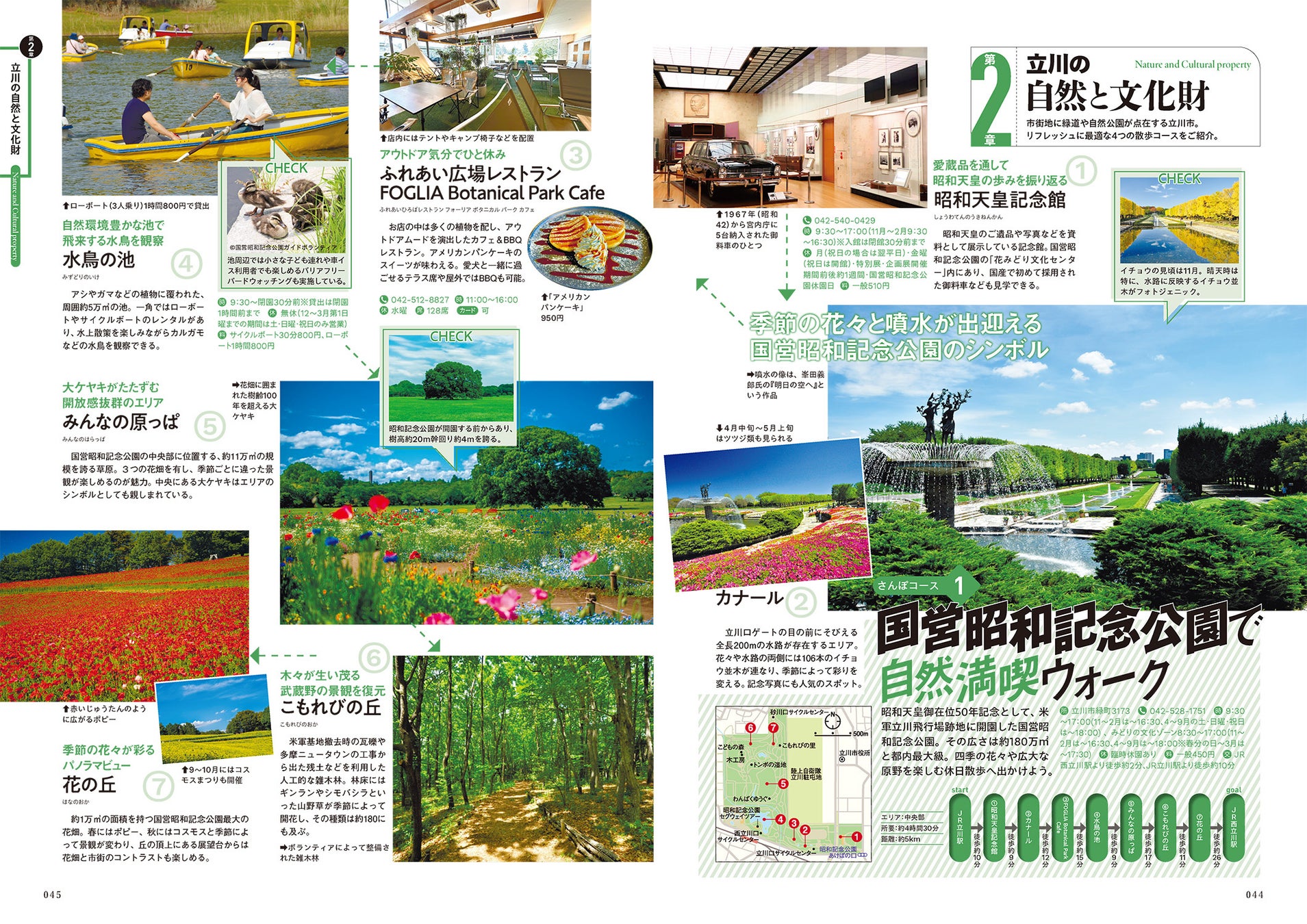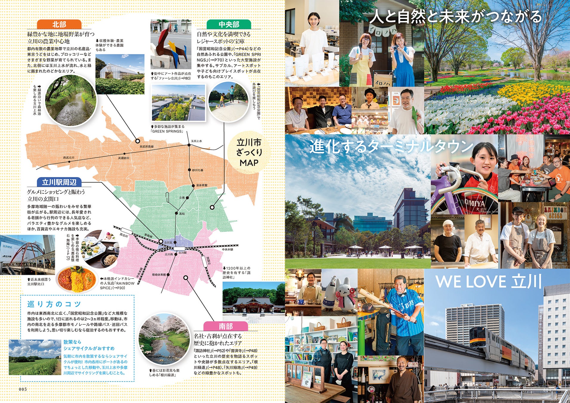 多摩地区有数のターミナル都市として発展してきた立川の歴史をふまえ、「グルメ」「自然と文化財」「ファミリーレジャー」「街とスポーツ・カルチャー」「農業・産業」などの切り口から、現在の立川市の姿を全方位から取り上げております。