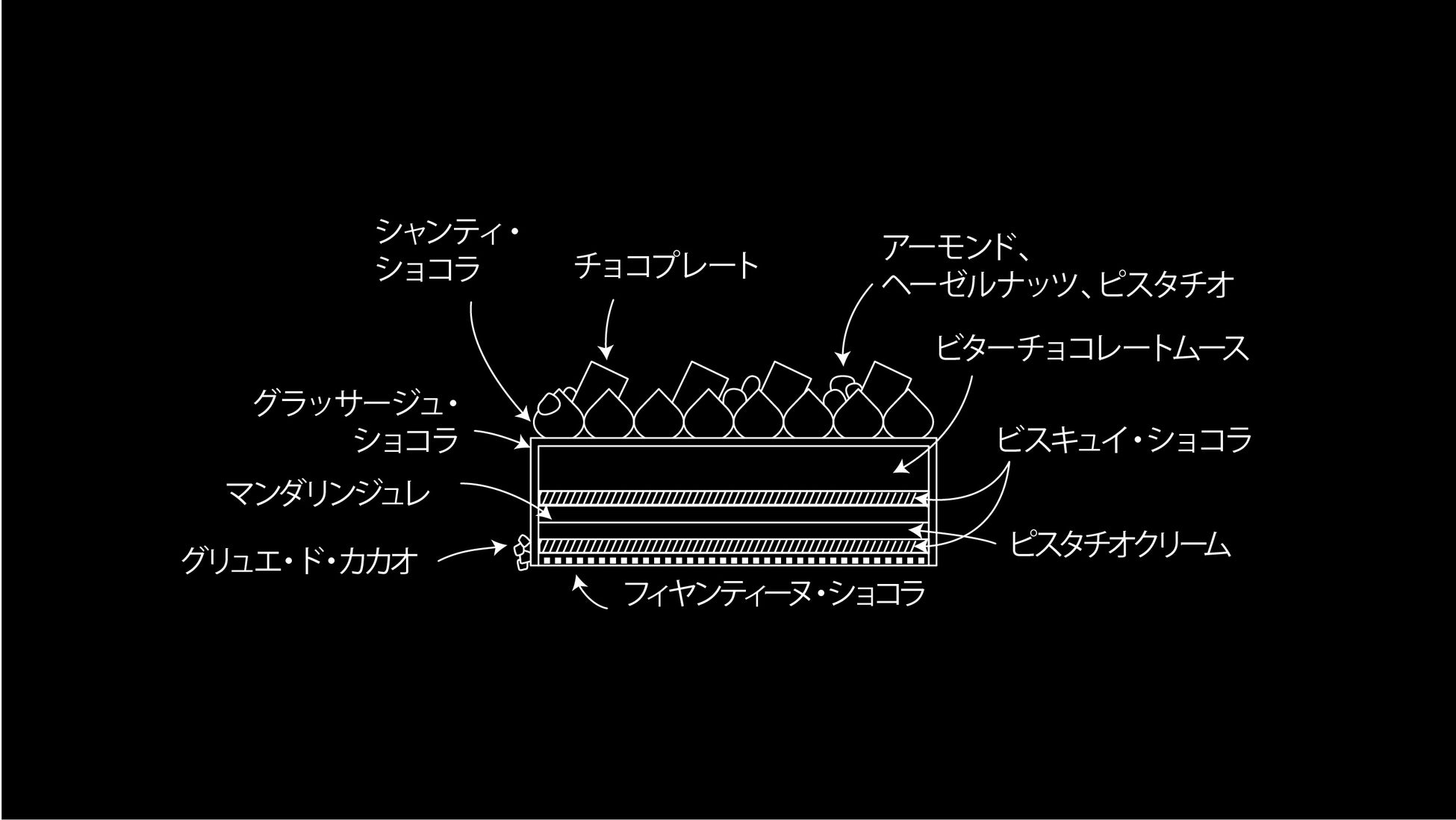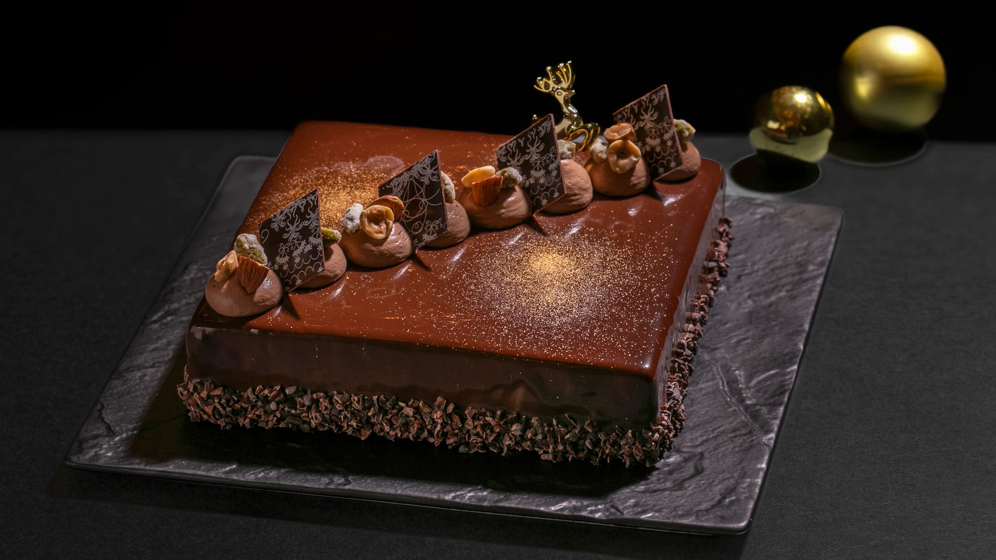 冬の夜の静けさを表現した、深く滑らかなチョコレートケーキ。