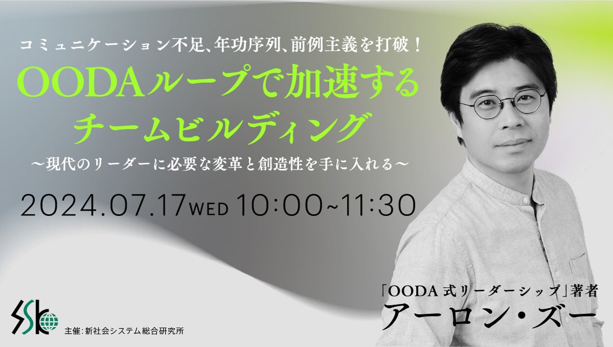 「OODAループで加速するチームビルディング」と題して、「OODA式リーダーシップ」著者 アーロン・ズー氏によるセミナーを2024年7月17日(水)に開催!!