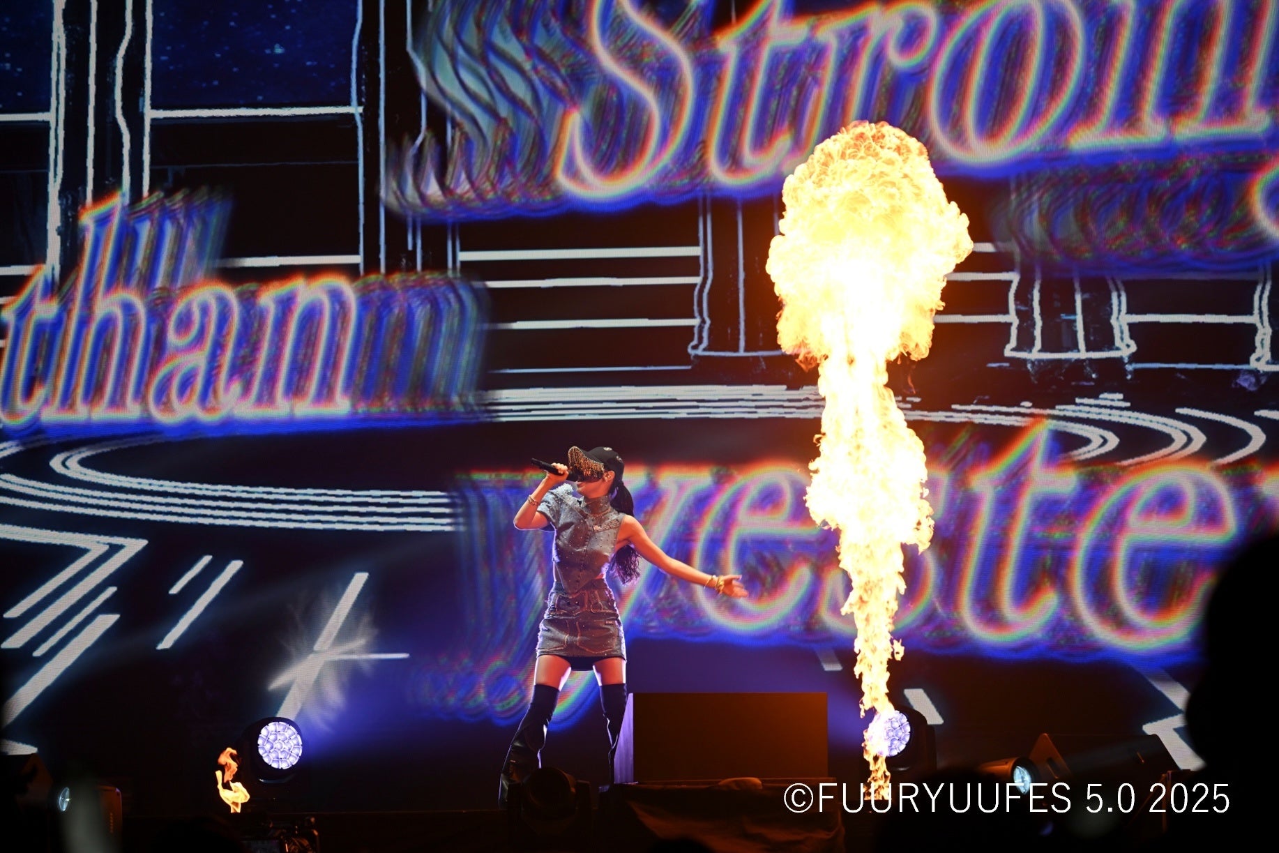 トリを飾ったのは「KizunaAI」。2016年にヴァーチャルYouTuberの先駆者として誕生し、広いフィールドで大活躍するが、2022年に無期限活動休止。しかし2025年2月、3年ぶりに活動を再開。今回、「FUURYUUFES」に初参加となった。ステージに登場し「かもね」が始まると大きな声援が響き、その人気の高さを改めて感じさせてくれた。「はいどうも、KizunaAIです! 盛り上がっていますか?」と呼びかけ、大きな歓声に両手を振って応えた。「『FUURYUUFES』初出演です!トリを務めさせていただきます!みんなで声出して、最後まで盛り上がっていきましょう」と言って「future base(Homecoming REMIX)」「AIAIAI」を歌唱。「会場のみんなの声が聞けて、めちゃくちゃ楽しいです。同じ空間で音楽を通じて一つになれている空間が現地ライブならではだなって思って、すごく嬉しいです。本当に今日、最高!」と喜びを爆発させた。「たくさんの出演者の皆さんでバトンを繋いで、見てくれているみんなと一緒に一つのライブを作ってくれていることがすっごく幸せです。『FUURYUUFES』参加できてよかったです。ありがとう! 全員で最後まで盛り上げて素敵なフェスにしましょう。また呼んでもらえると嬉しいです」と伝えて、「Hello, Morning」を甘狼このみ、音ノ乃のの、宗谷いちか、ぶいごま、iLiFE!とのコラボで届けてフェスを締めくくった。