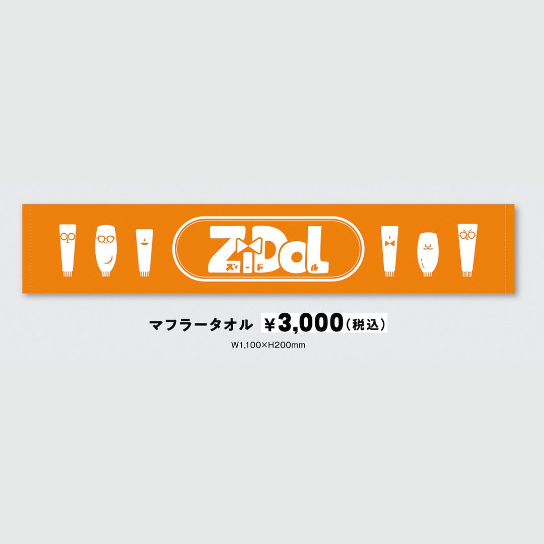 チューブになったメンバーのイラスト入りのマフラータオル。