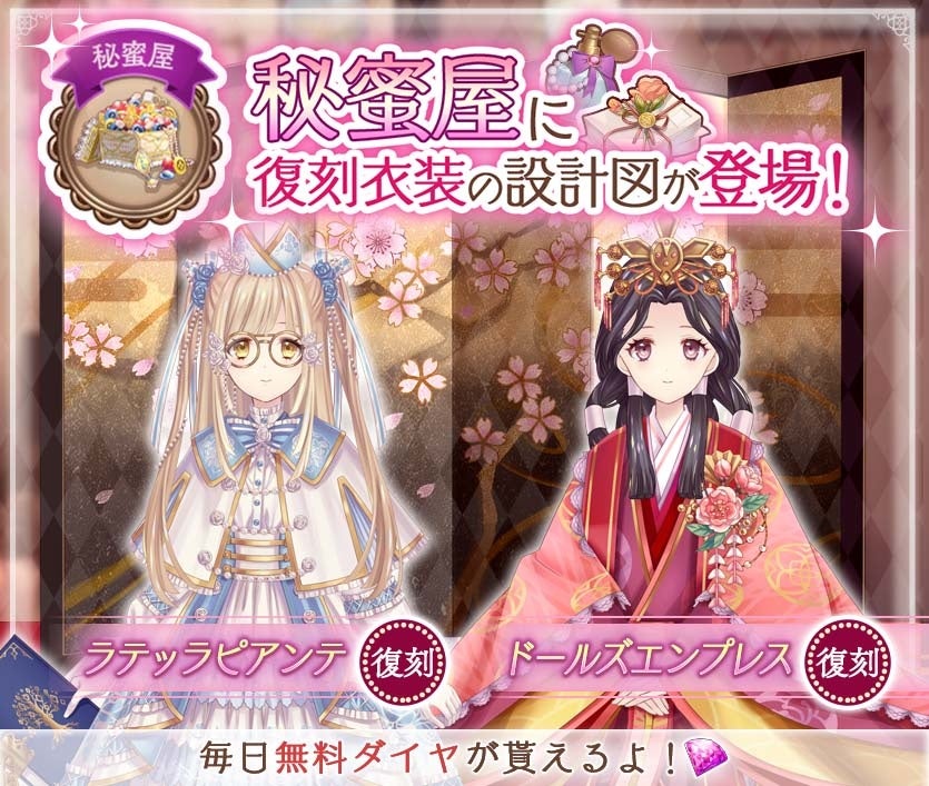 秘蜜屋にて「ラテッラピアンテ」「ドールズエンプレス」コーデの設計図が登場中です! 復刻コーデ設計図のラインナップは2週間ごとに切り替わります♪
