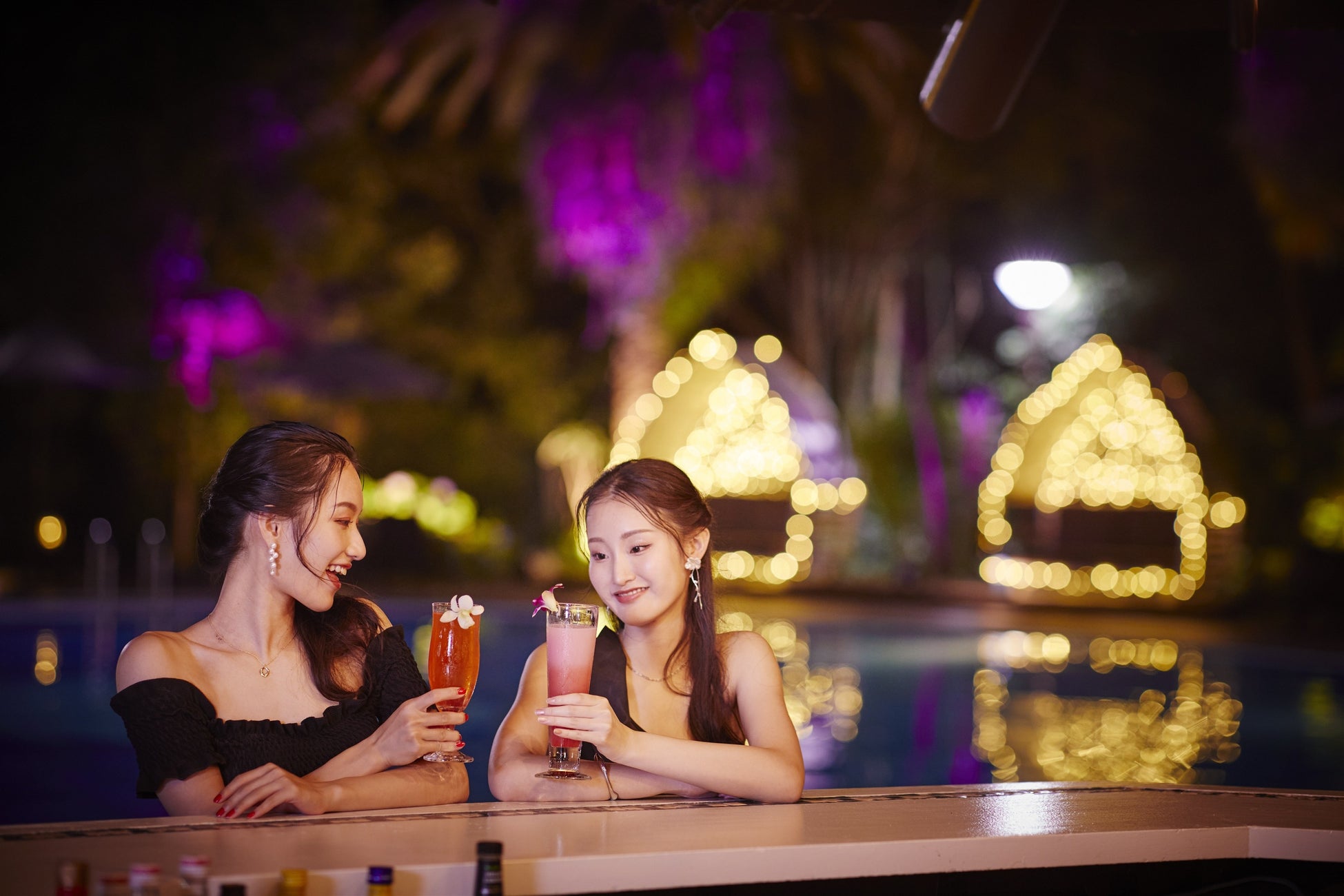 日差しが厳しい夏の期間、“日焼けはしたくないけど、夏の気分を高めるプールには行きたい!”そんな女性たちの希望を叶えるのがホテルニューオータニ幕張のアウトドアプール「Shell Pool」のナイトプールです。テレビドラマやCM、アーティストのミュージックビデオにも使用されてきた、海外のリゾート地を彷彿させる絶好のロケーションで日焼けを気にせず優雅なひとときをお過ごしいただけます。