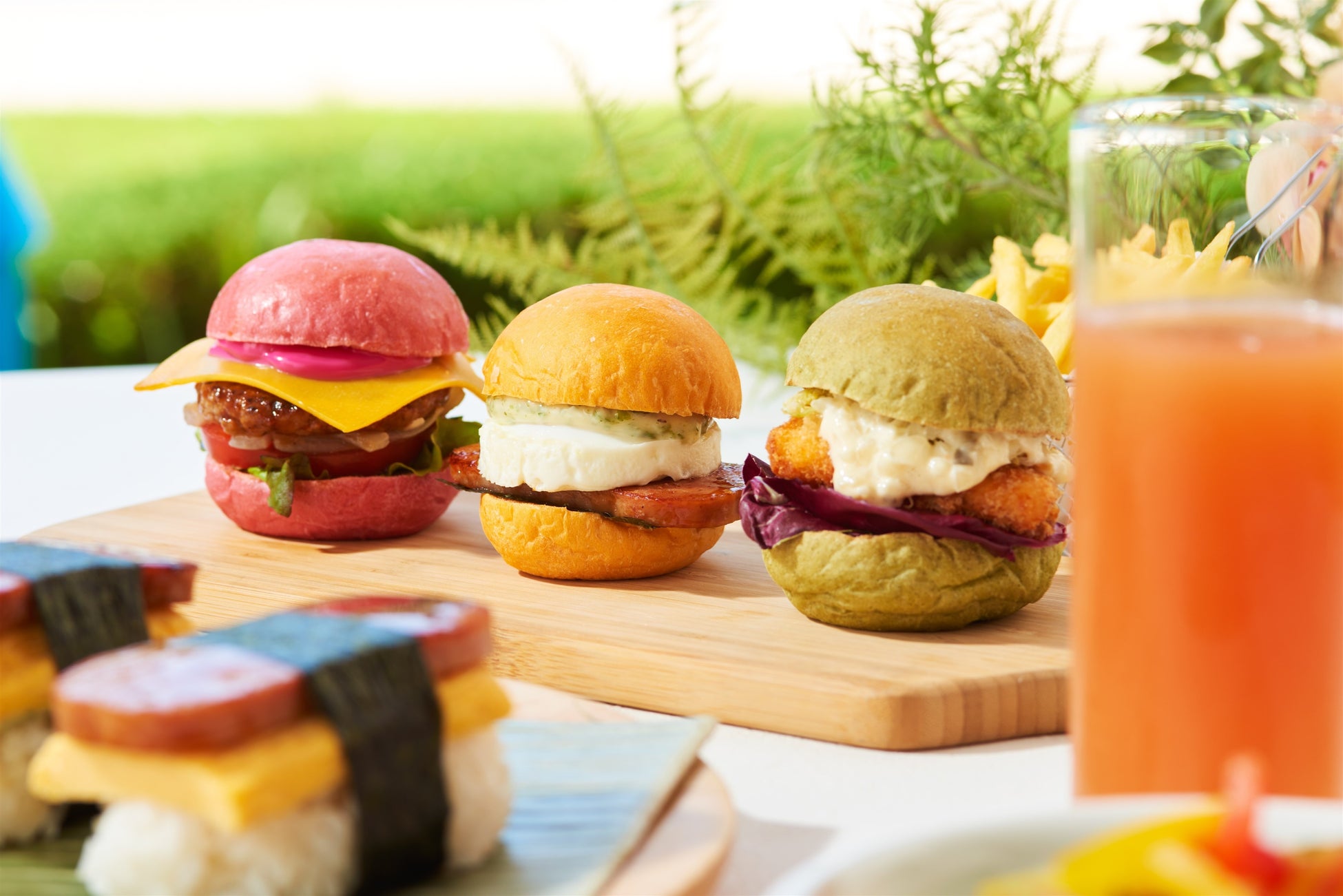 さらに、ビーツ・ほうれん草・トマト、彩り豊かな3種のバンズに、それぞれ個性あふれる具材をサンドした新感覚のミニバーガーセット「3色スライダーバーガー」が今年新登場!