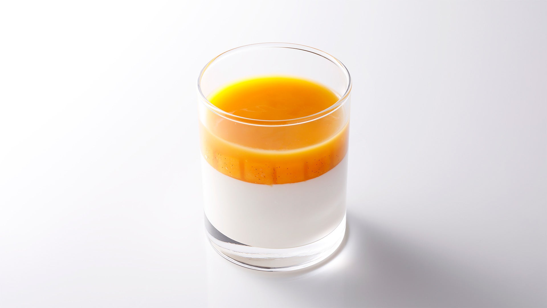 フレッシュなパッションフルーツピューレが入ったマンゴーゼリーに、葛をまとった甘みのあるアップルマンゴーを凝縮。爽快感広がる食感がこれからの季節にぴったりなゼリーです。