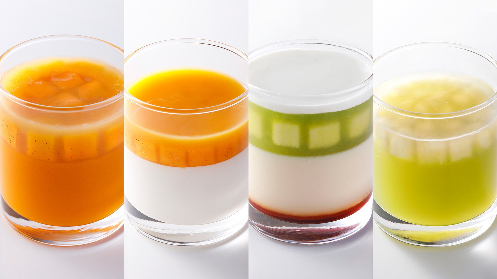 この夏登場するグラススイーツは、こだわり抜いた国産フルーツをふんだんに使用し、フルーツ本来の瑞々しさ・香り・甘み・旨みを最大限に引き出した逸品ばかり。果実の香りが優しく漂り、スプーンを入れた瞬間から広がる冷涼感と、ひとくち食べた瞬間に感じる滑らかな口当たりで五感を潤す、まさに、ご褒美贅沢スイーツです。ホテルメイドならではの洗練された上品な味わいは、夏の暑さを忘れさせるような極上な“涼”のひとときへと惹きこみます。