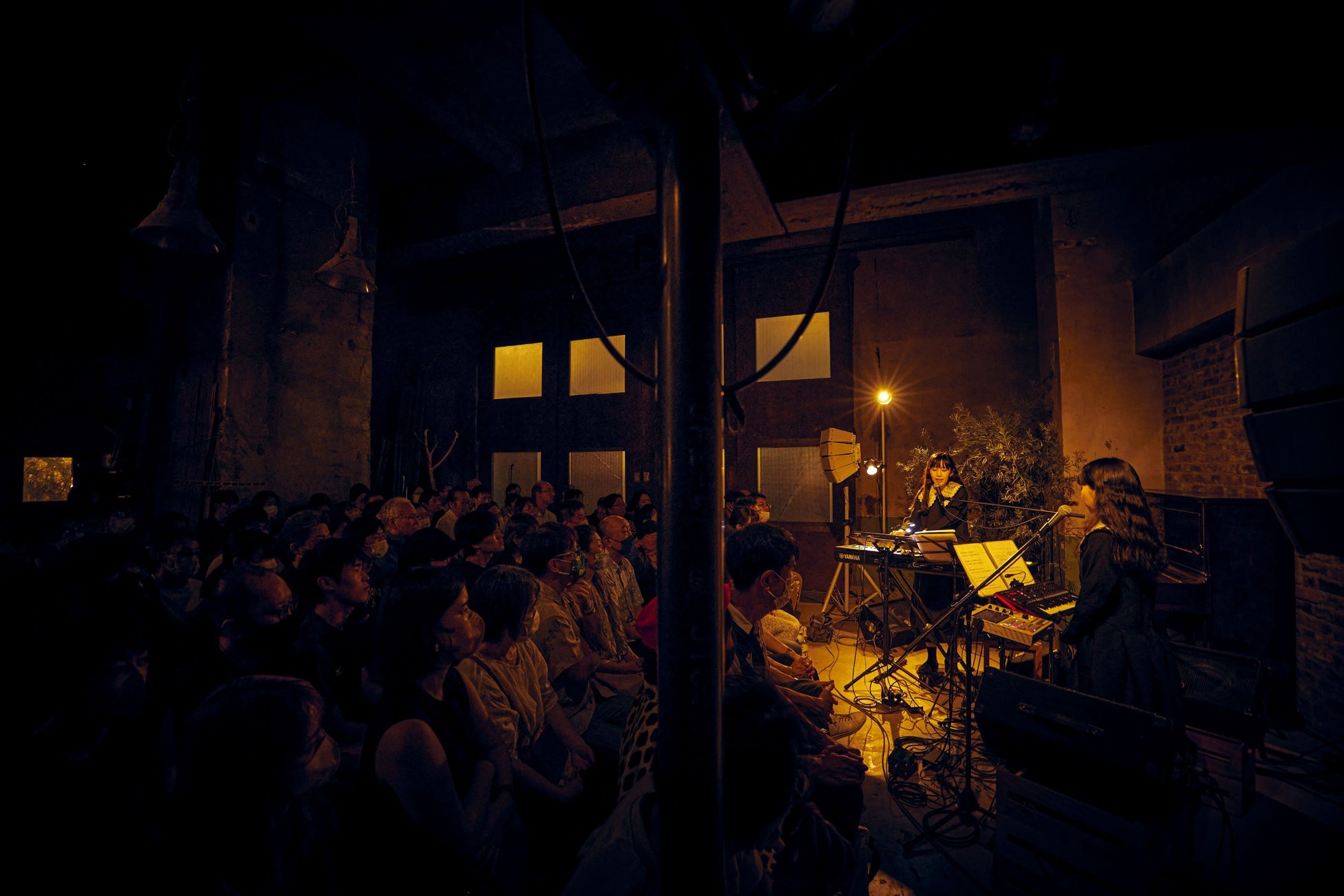 会場は廃工場を再生した工房で、イベントがない日には作業場として使われている。レンガや打ちっぱなしのコンクリートで仕上げた壁や、工場の名残りがある大きな鉄扉、配管が剥き出しの照明――。2019年から開催してきた『キトリの音楽会』でのチャペルやホールなどの会場とは違った無骨な空間に、早くも新たなライヴの幕開けを感じた。