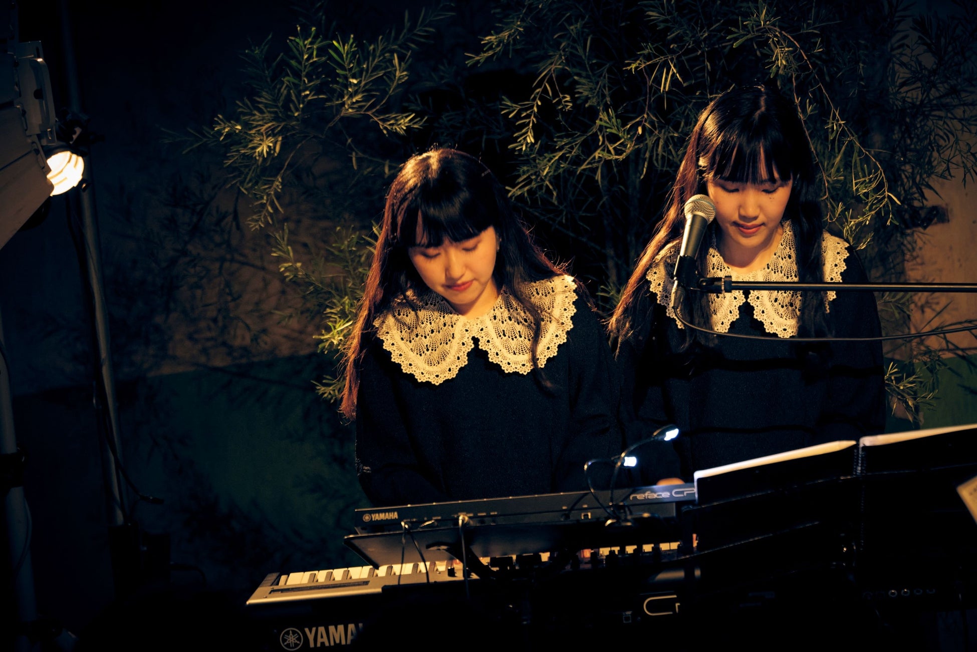 1曲目に演奏された「LIFE」の原曲は、“運命”“歓喜の歌”などのフレーズを取り入れた嵐のように去っていく曲だが、“Melody Noir”ではHinaが打ち込む軽やかなドラムビートと、Monaがピアノで鳴らすどこか冷淡なメロディーでクールな出来栄え。「細胞のダンス」では原曲のおどろおどろしさを一変させ、メロウなムードを醸し出す。間奏にはほのかに連弾のメロディーを思わせるエレクトロアレンジも加わり、日が陰ってきた時間帯にもよく合っていた。