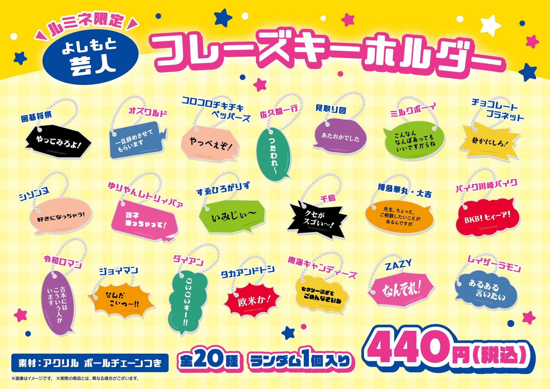 ルミネtheよしもと出演者の名フレーズがアクリルキーホールダーに!