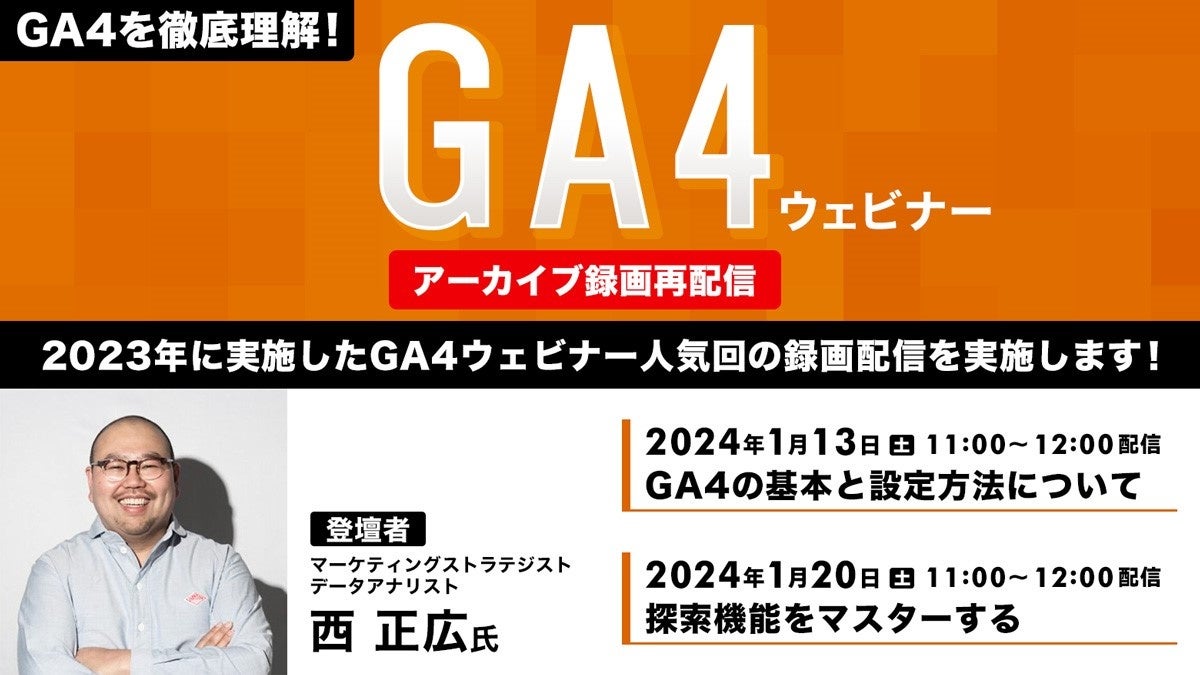 【Webクリエイター向け】GA4の基本と探索機能をマスターしよう!1/13(土)・20(土)GA4ウェビナー人気回のアーカイブ映像を無料配信