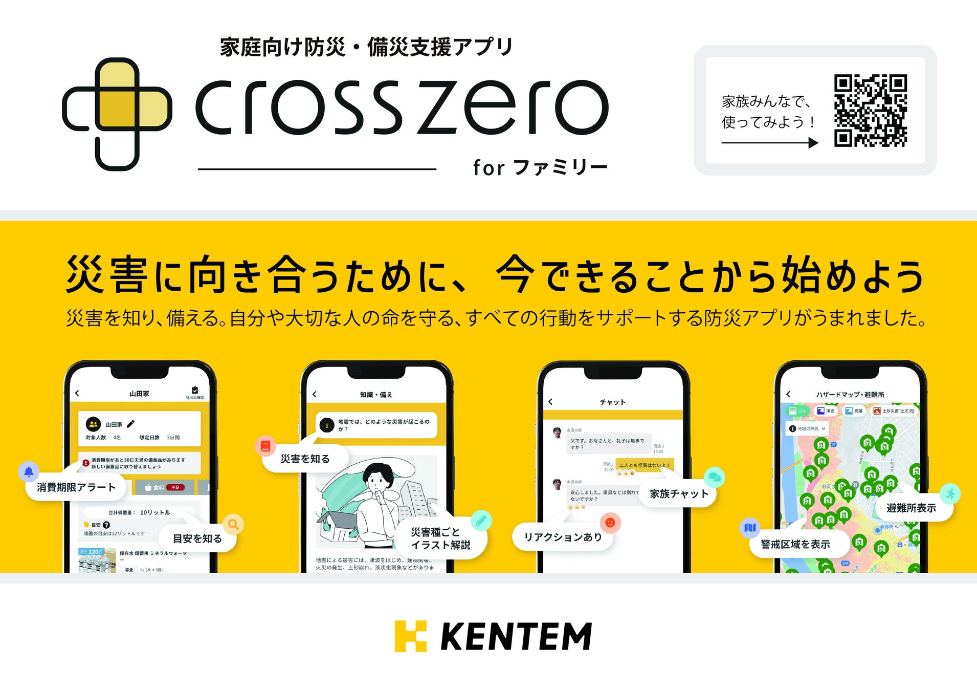 「クロスゼロ」は、どんな環境でも適応できる防災リテラシーを補い、災害時の安否確認のみならず、防災情報や防災教育といった「自助」から、リスク共有や家族の情報共有といった「共助」まで網羅されているアプリです。