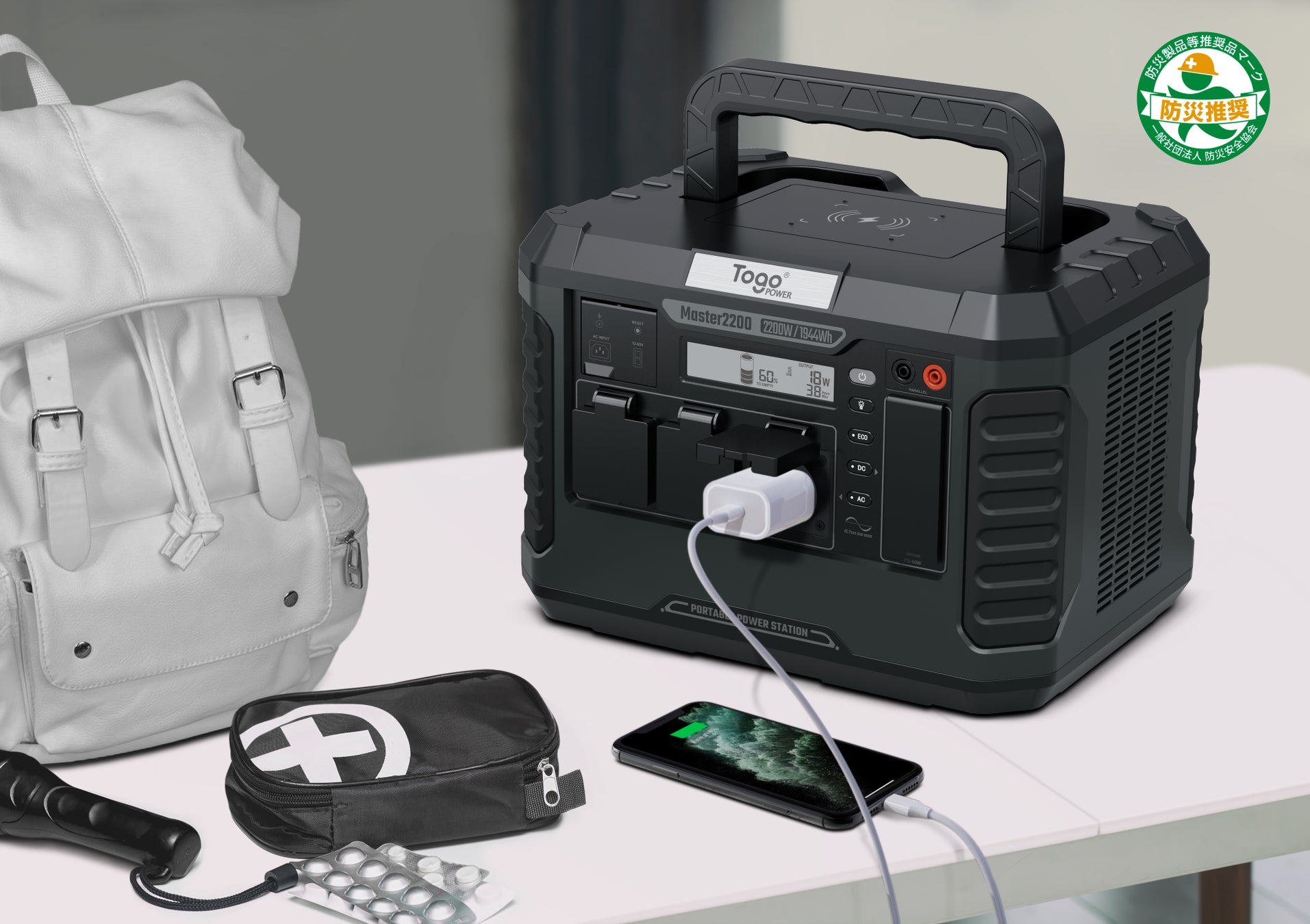 防災安全協会推奨ポータブル電源、1944Whの容量プラス2200Wの出力で、アウトドアだけでなく災害時にも活躍します。1.5時間で全容量の80%まで充電が可能な、急速充電技術を搭載。無停電電源装置も搭載しているため、充電しながら使用している際に突然停電しても、0.01秒で充電器からの電力出力へ自動切換えができます。並列運転機能搭載、容量と出力が倍増可能です。一台あればあらゆるニーズに適応します。
