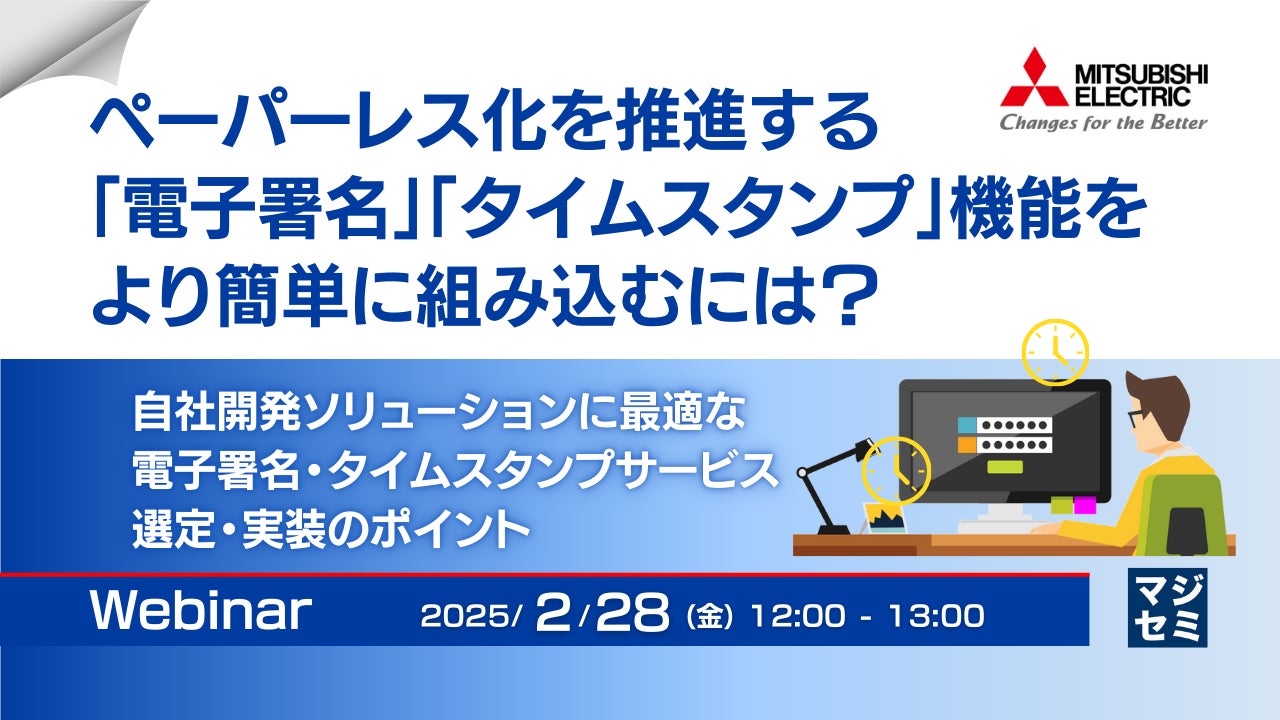 マジセミ株式会社は「ペーパーレス化を推進する「電子署名」「タイムスタンプ」機能をより簡単に組み込むには?」というテーマのウェビナーを開催します。