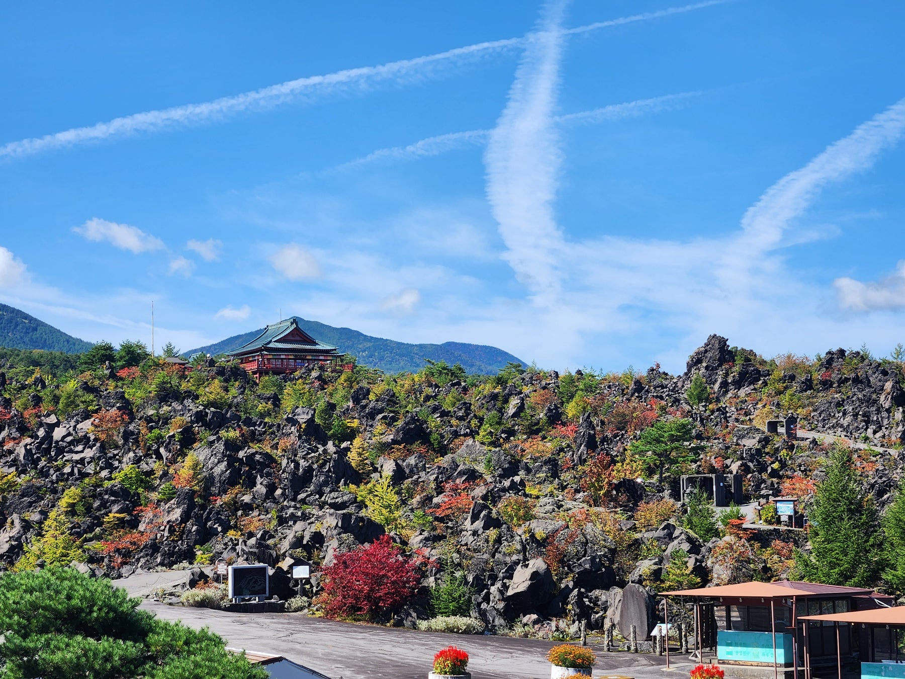 園内は徐々に色づき始めており、今月中旬から見頃を迎えそうです。溶岩の黒、赤や黄色に染まった木々の葉のコントラストは鬼押し出し園ならではの奇観ともいえます。